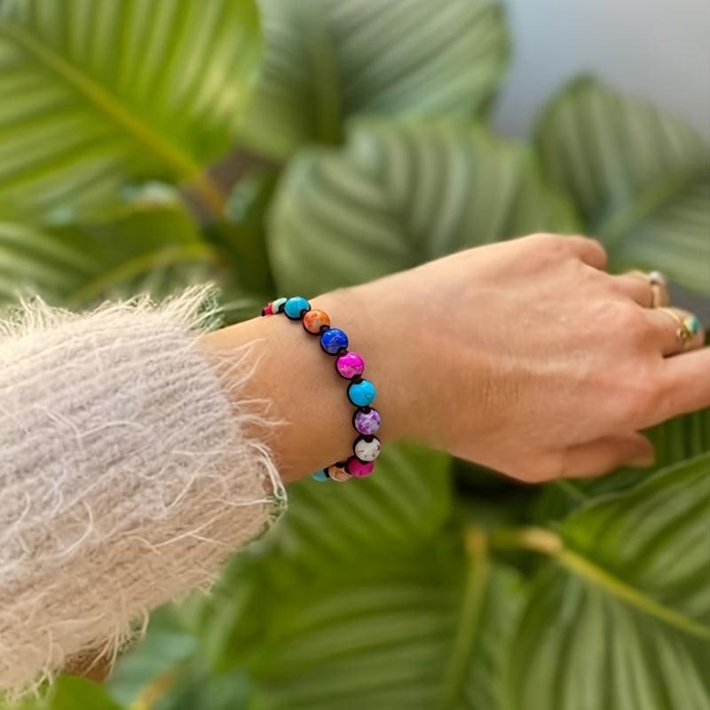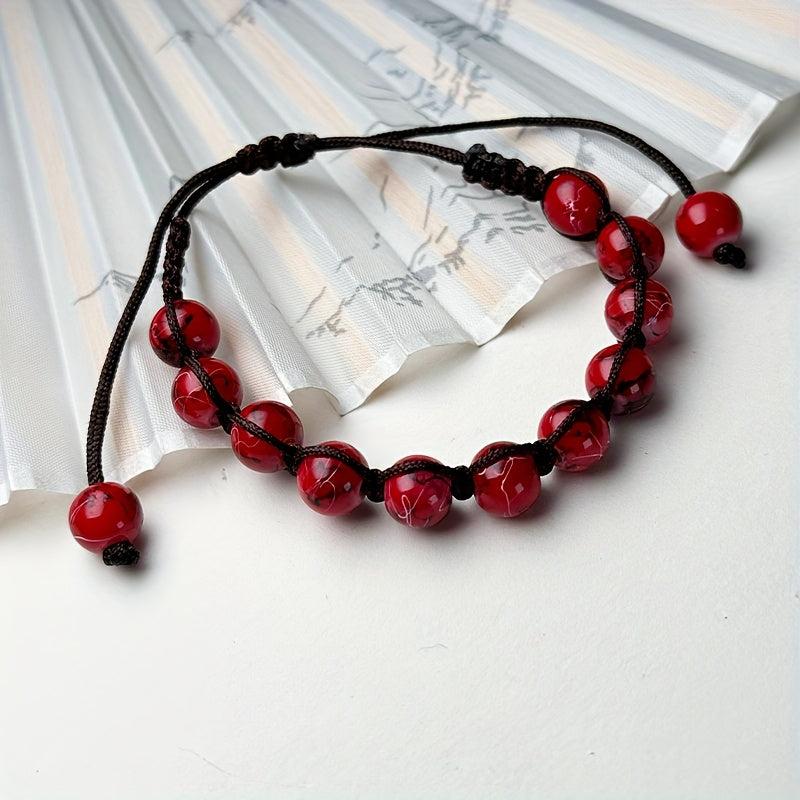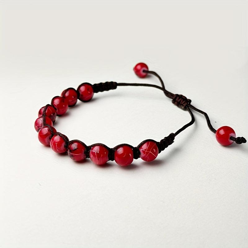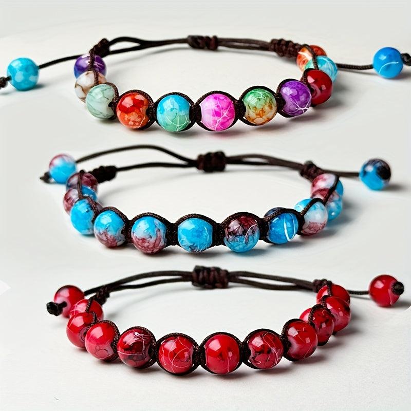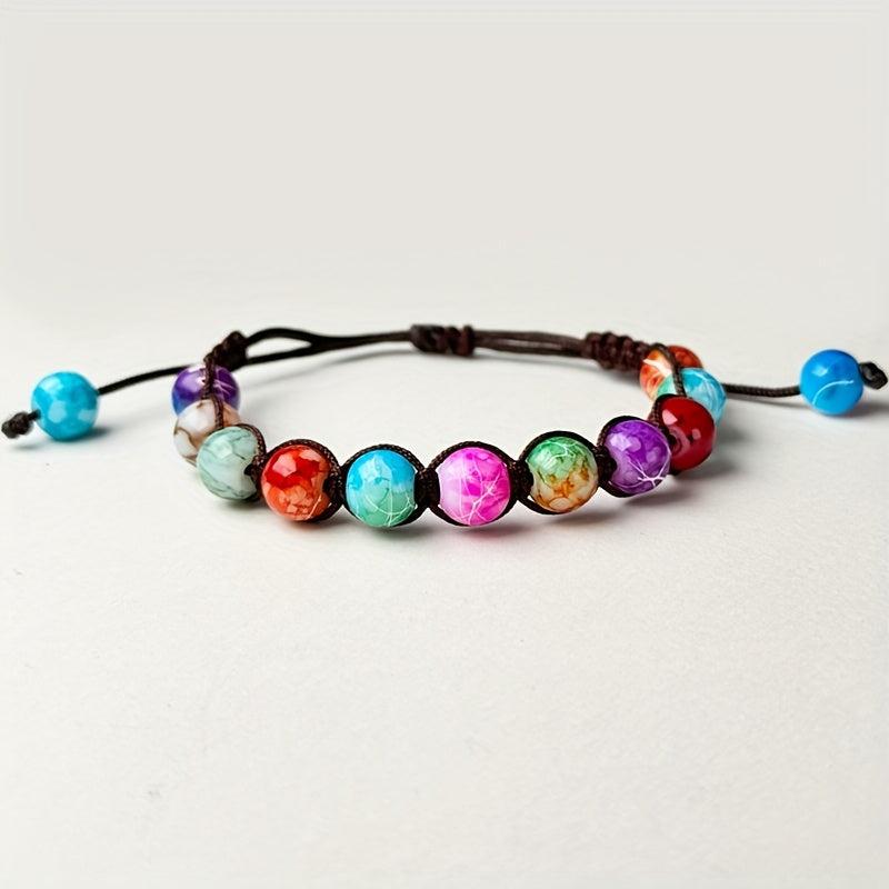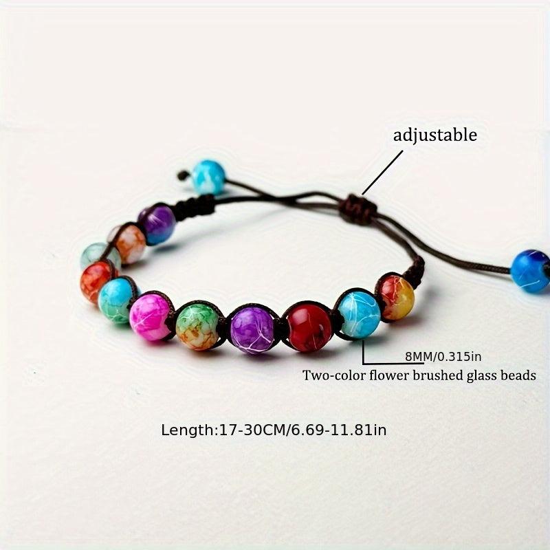 This bohemian style bracelet features vibrant glass beads in red, green, and orange, making it a perfect gift for friends, couples, or family members. The adjustable design allows for a comfortable fit.