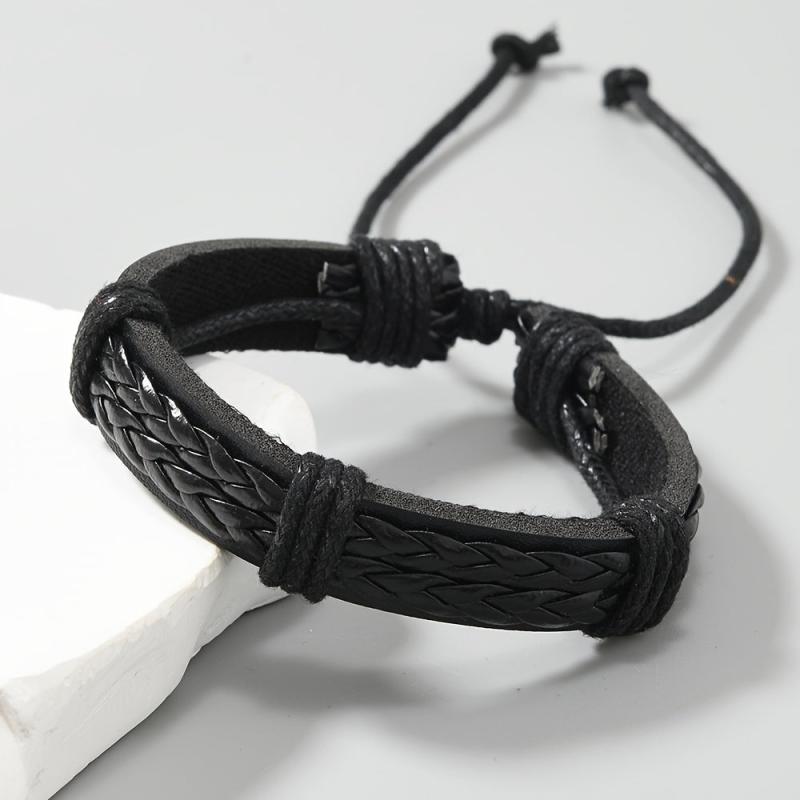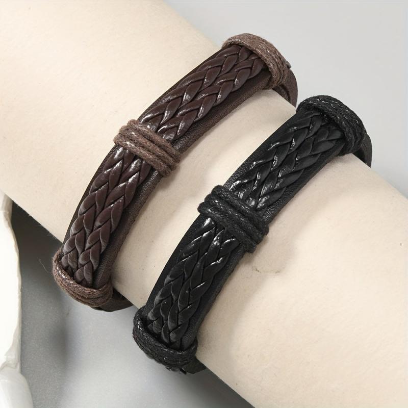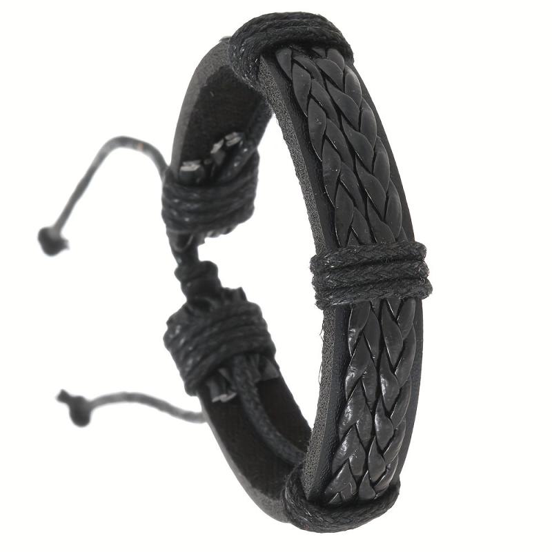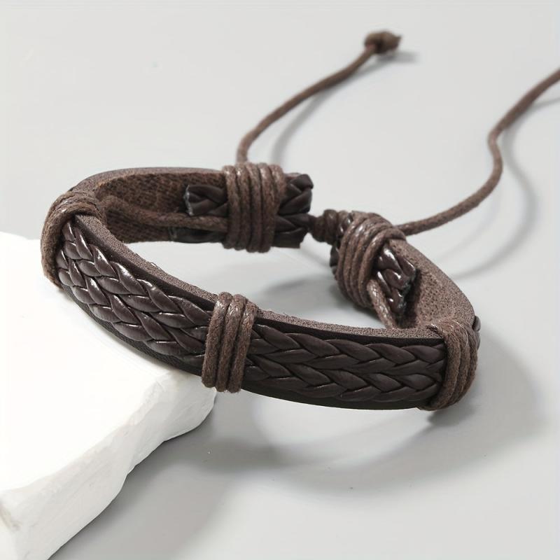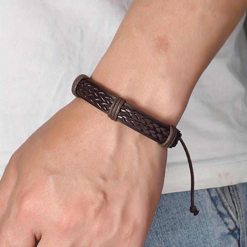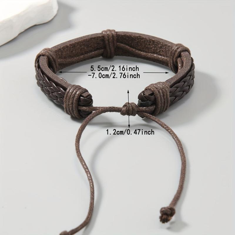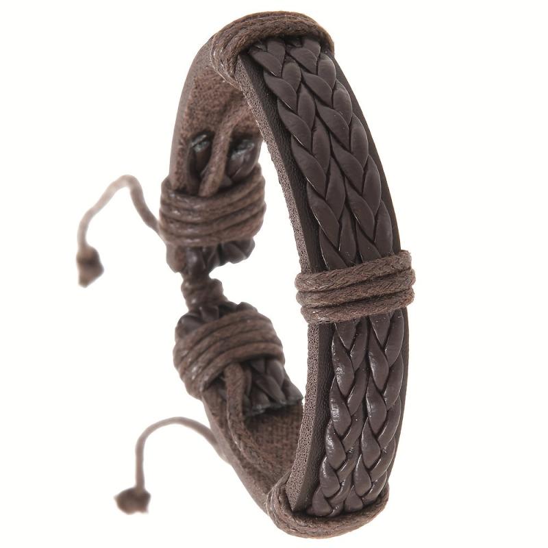 This vintage handwoven PU leather bracelet with an adjustable knot closure is perfect for everyday wear. The dark brown color adds a touch of style to any outfit.