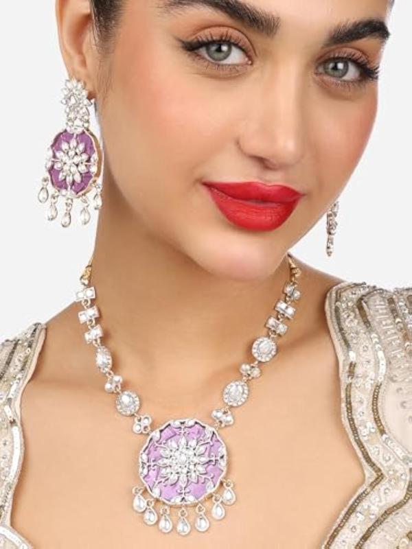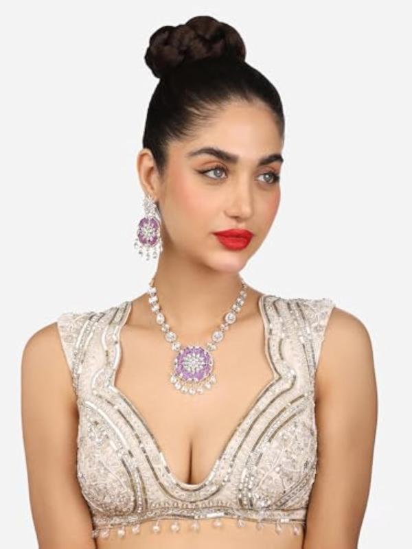 Get mesmerized by the dazzling Austrian diamonds on this floral necklace and earring set. Perfect for all occasions.