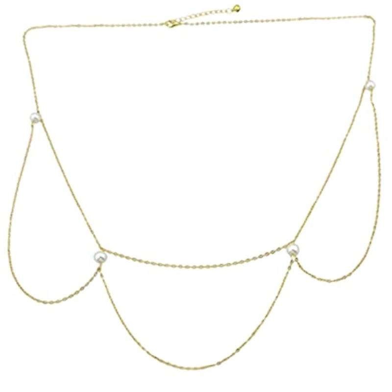 Add a touch of elegance to your beach attire with this pearl waist belly chain.