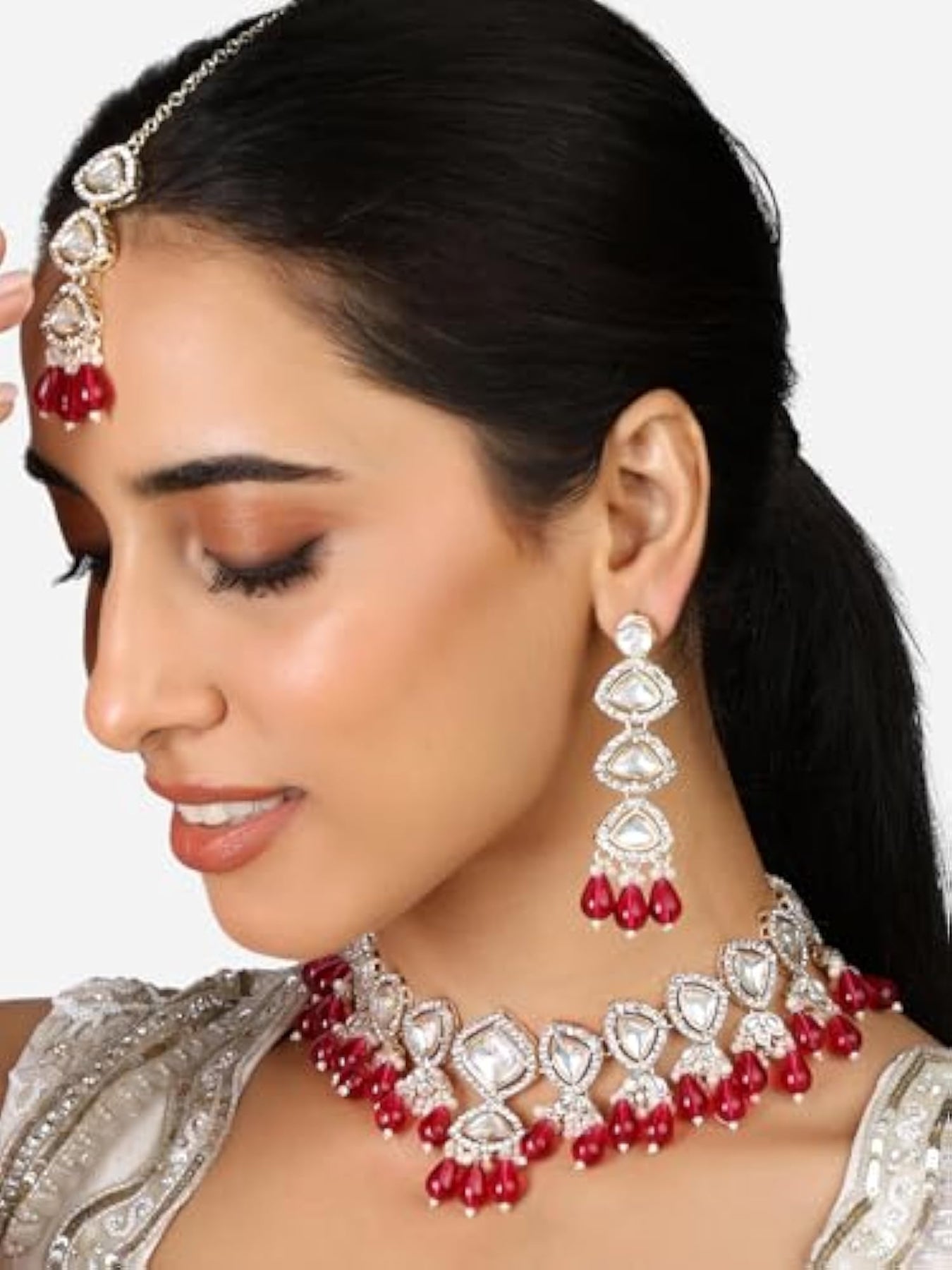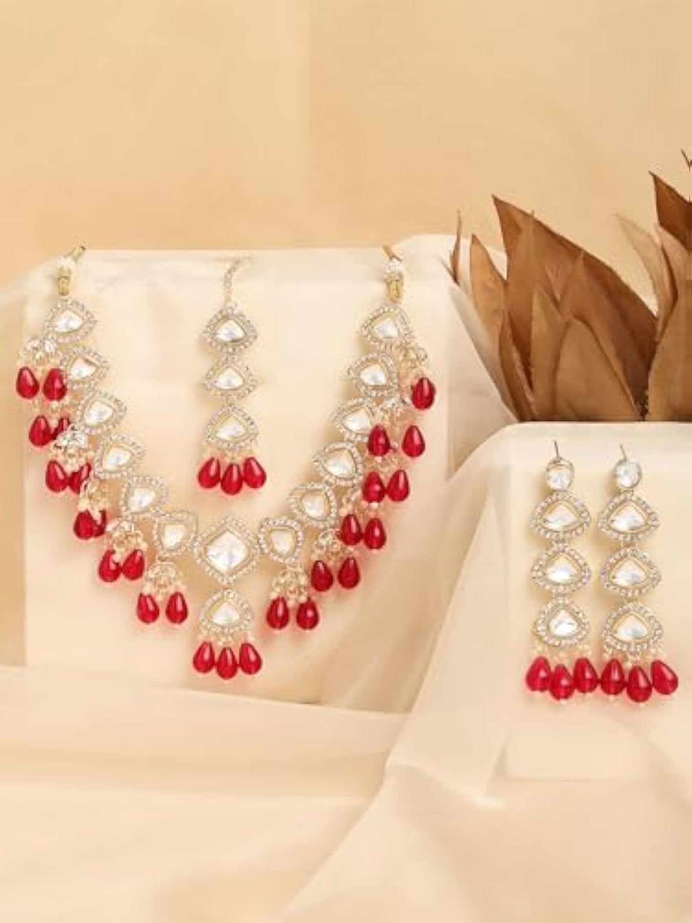 Elegant jewelry set with beads drop and dazzling stones embellishments for women. Perfect for special occasions.