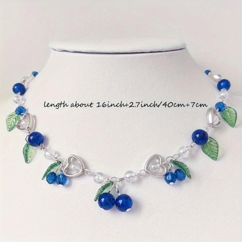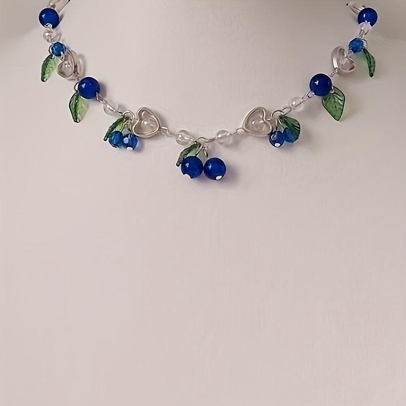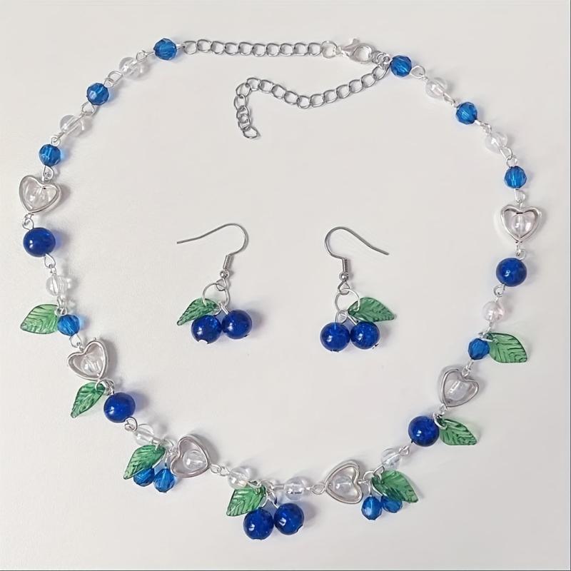 Complete your summer party look with this dangle earrings and necklace set featuring berry beads. Perfect for a vacation or a bohemian style outfit.