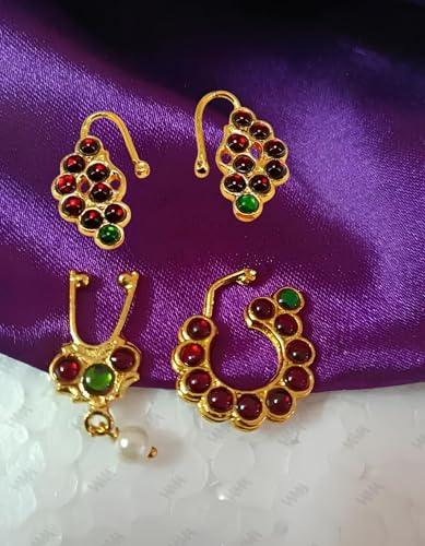 This Kempu Nose Ring Pin Nathiya is perfect for traditional Bharatanatyam dance performances.