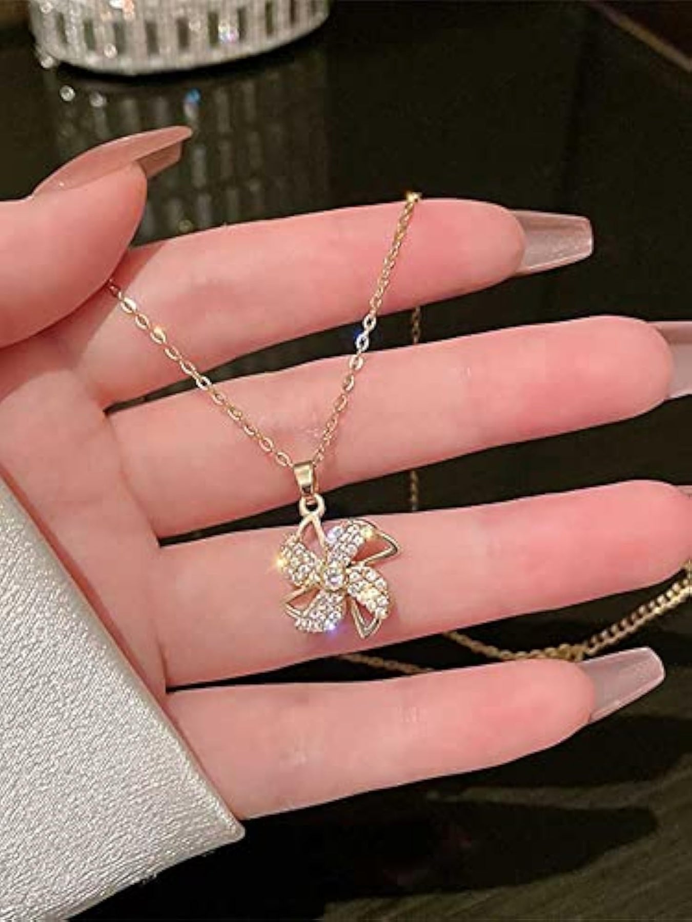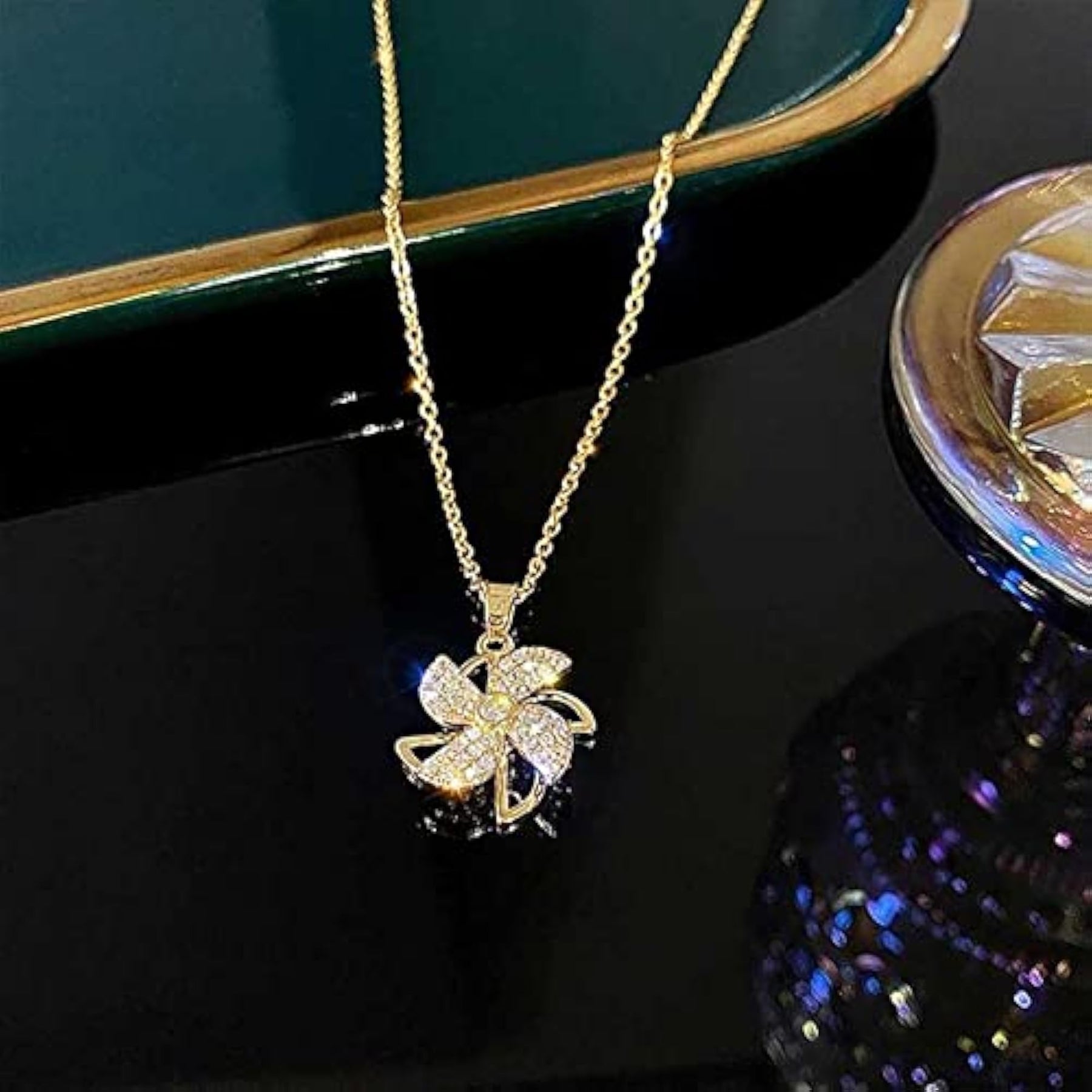 Elevate your style with this stunning plated jewelry set featuring zircon stones. The set includes a link chain necklace with a floral pendant and matching stud earrings.