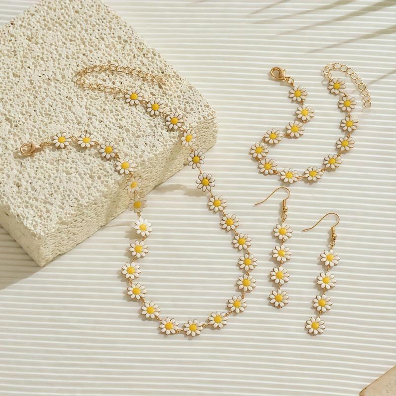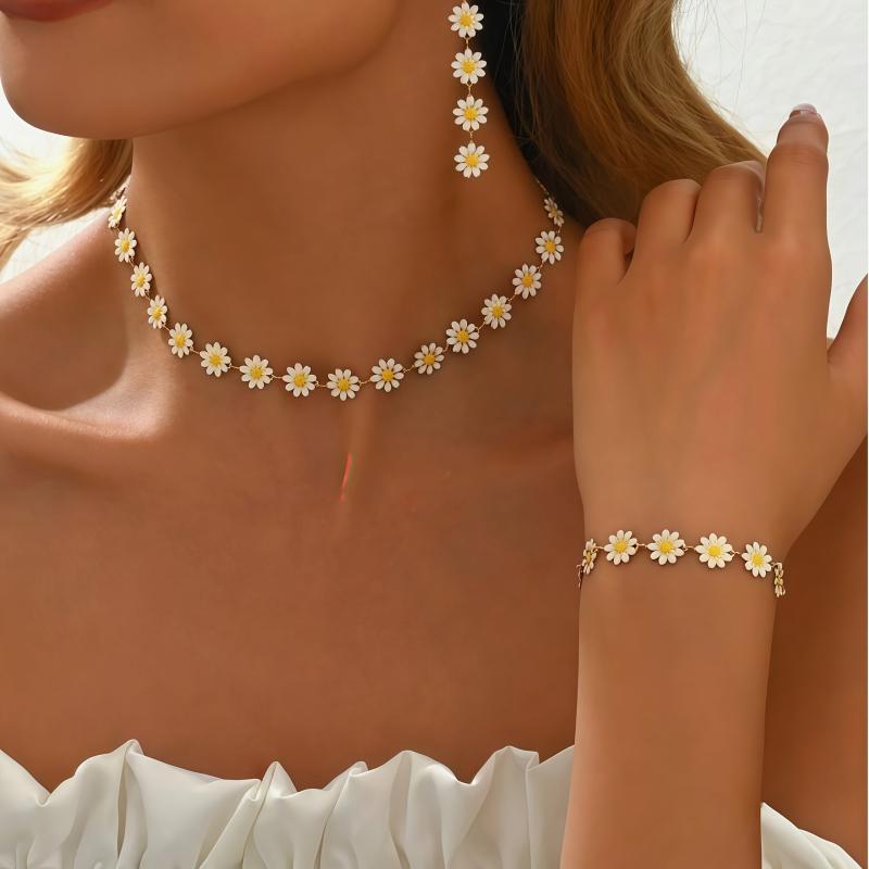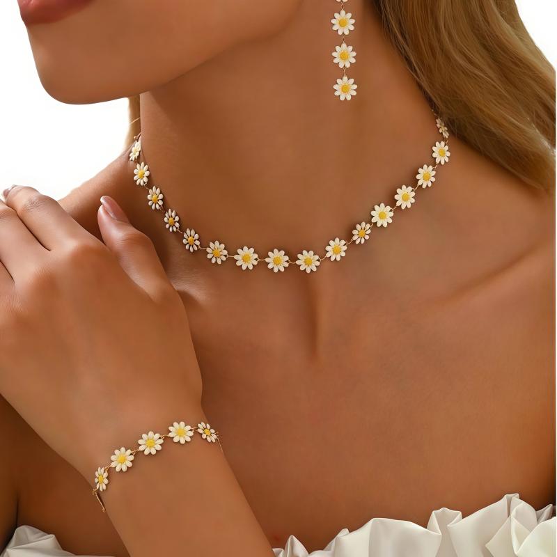 Elegantly designed vintage bohemian flower jewelry set with a bracelet, earrings, and necklace. Ideal for daily gatherings and as Holi accessory.