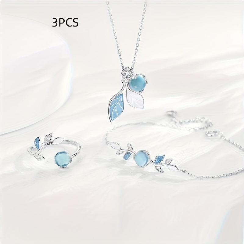 Elevate your style with this stunning 2pcs or 3pcs moonstone jewelry set including an open ring, bracelet, and necklace. Perfect for weddings, music festivals, tea parties, and gatherings.