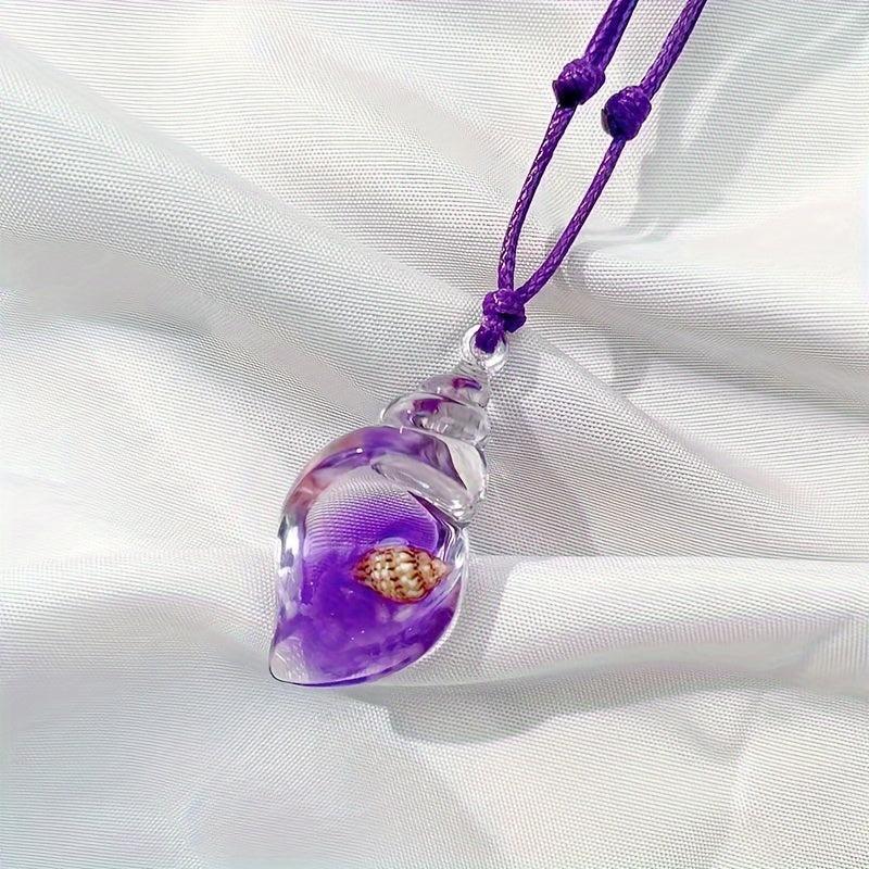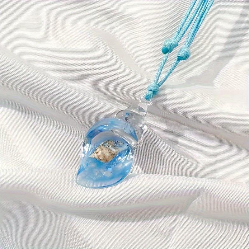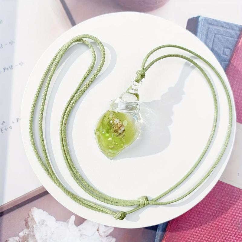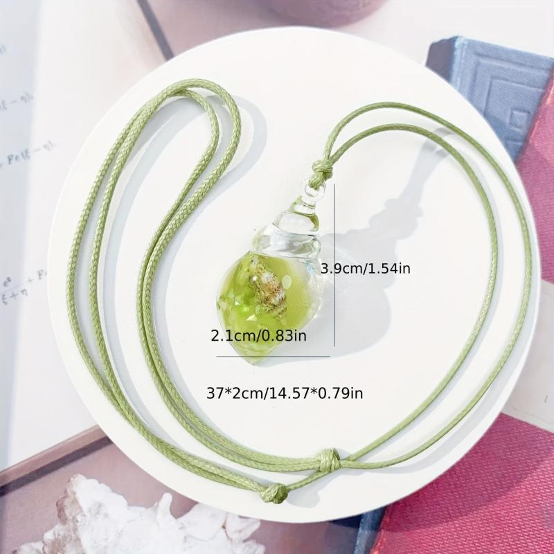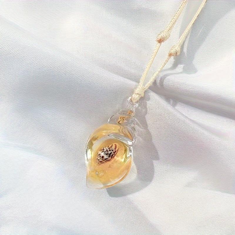 Elegant sea glass necklace featuring a colorful shell inclusion pendant. Perfect for vacation parties, teacher's gifts, and graduation celebrations.