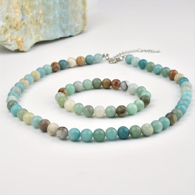 Elevate your style with this 2-piece jewelry set featuring natural stones in turquoise, aquamarine, and brown hues. Perfect for daily wear or summer vacation.