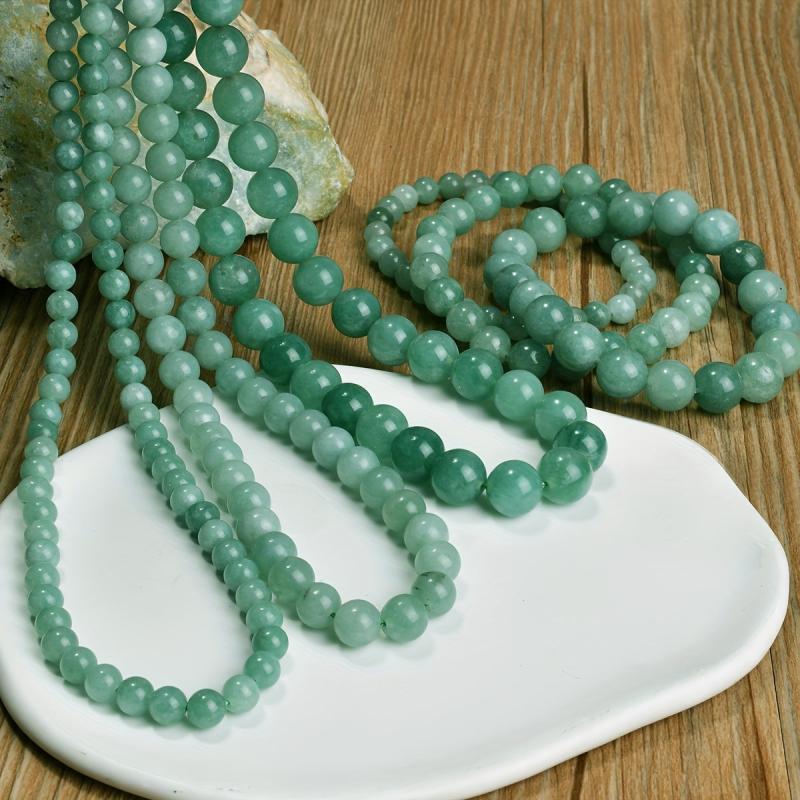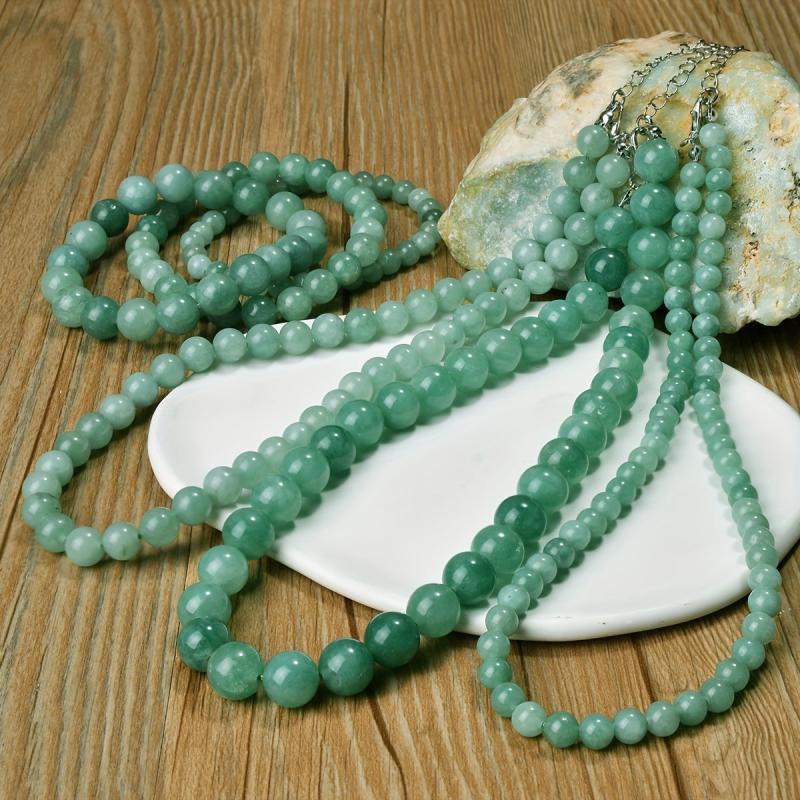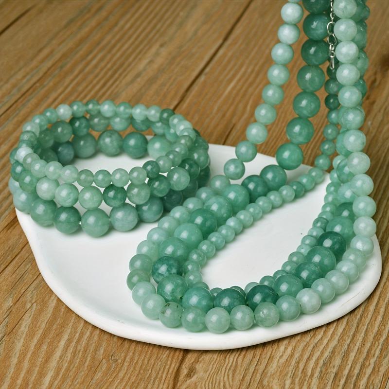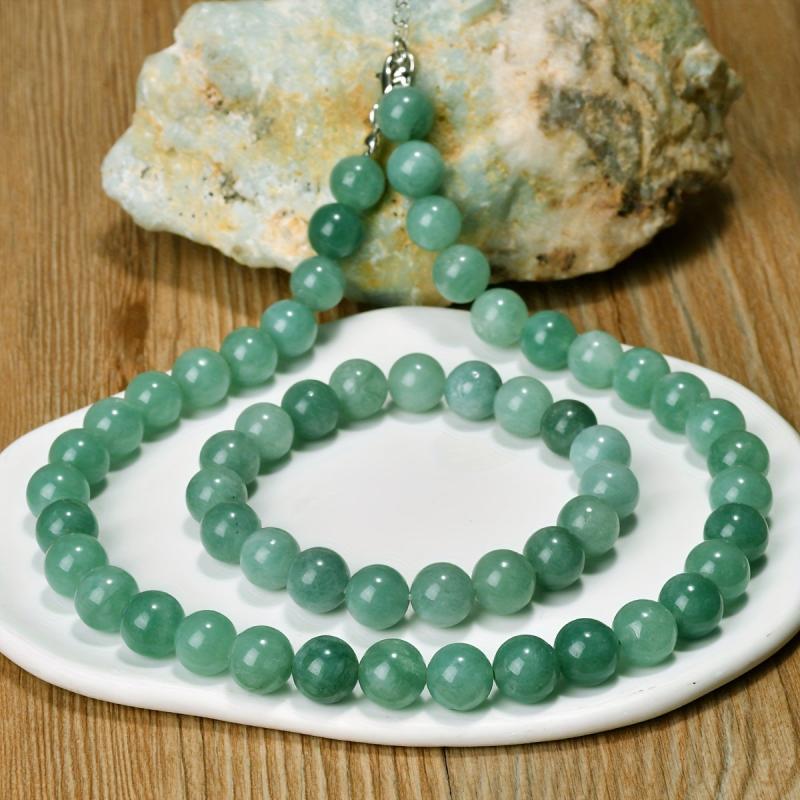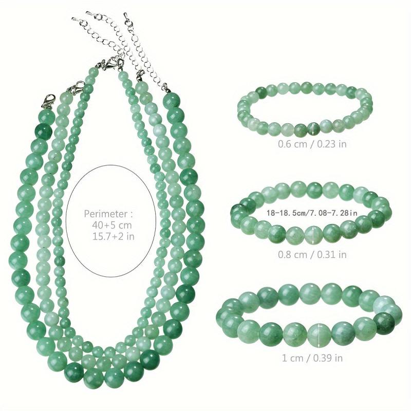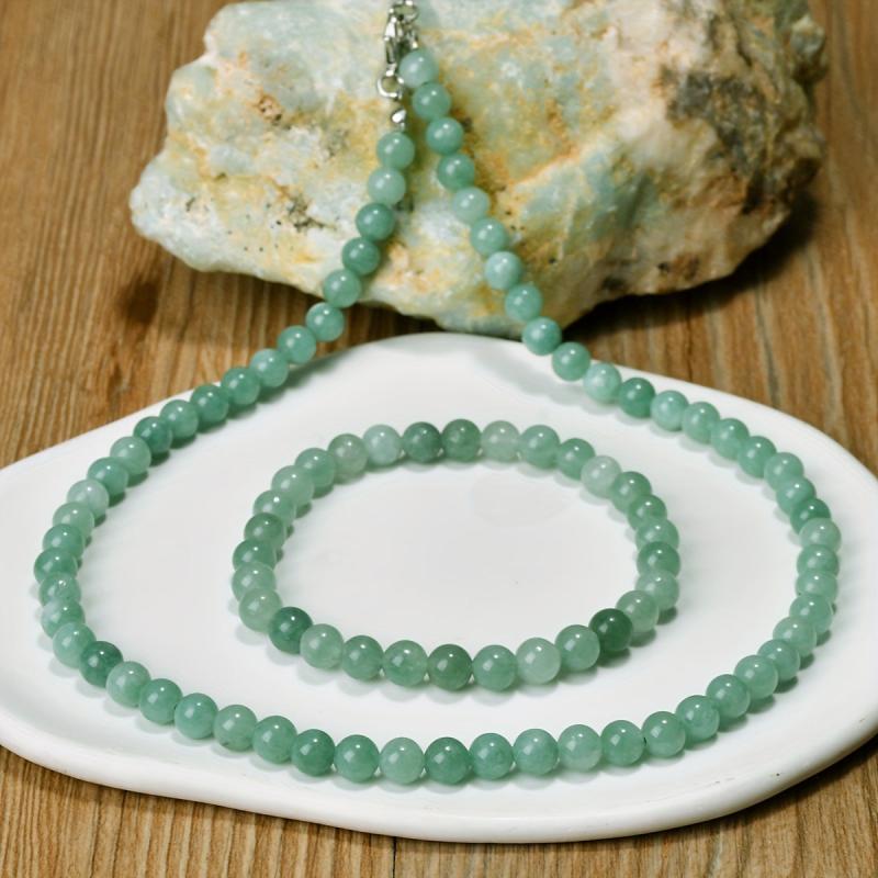 This 2-piece set includes a necklace and bracelet made of natural stone beads in a vintage green hue. Perfect for gifting to friends or wearing every day.