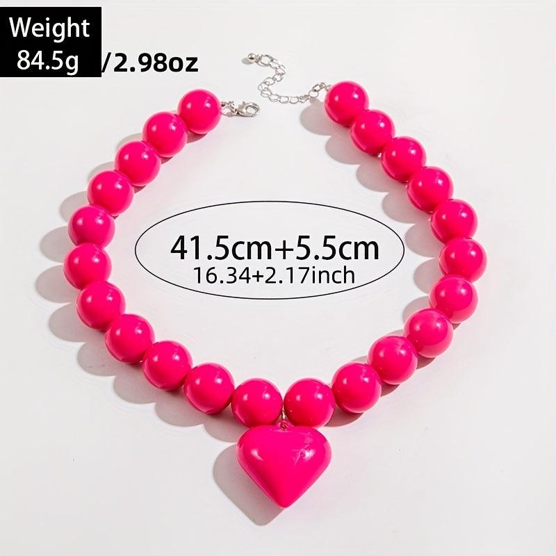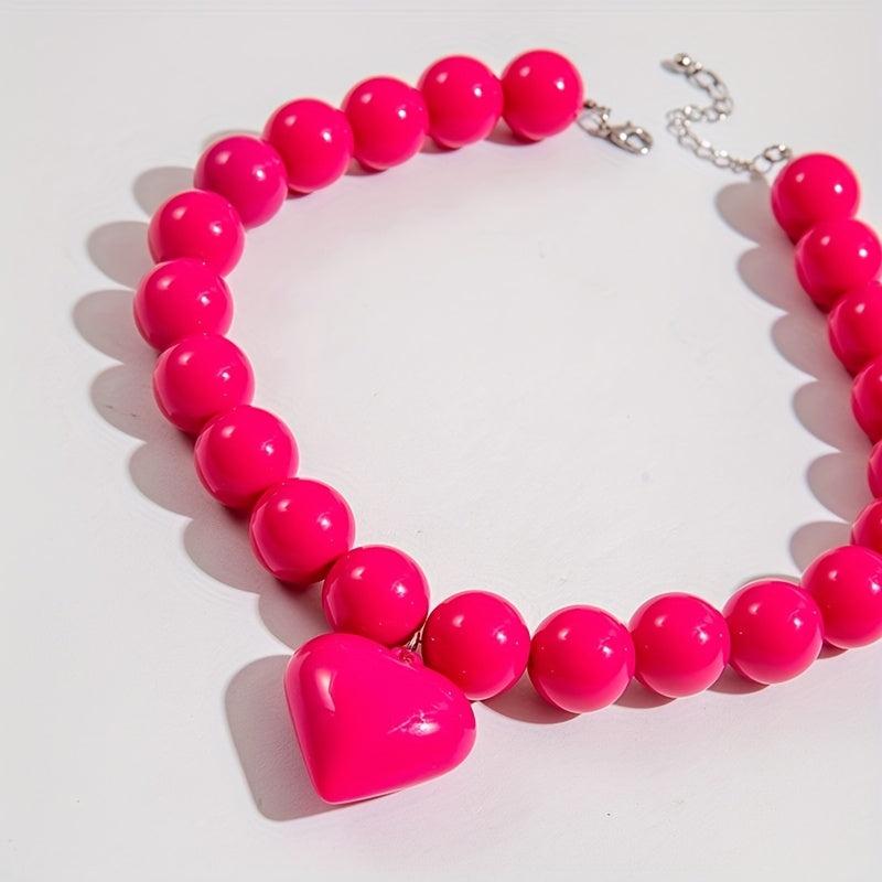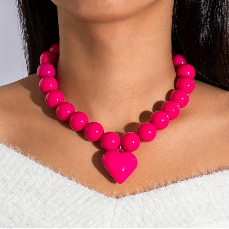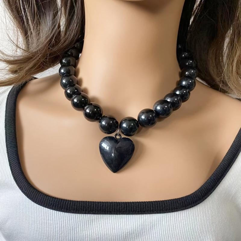 Elevate your spring and summer look with this bold and creative choker collarbone chain featuring an oversized bead, heart pendant, and short beaded necklace.