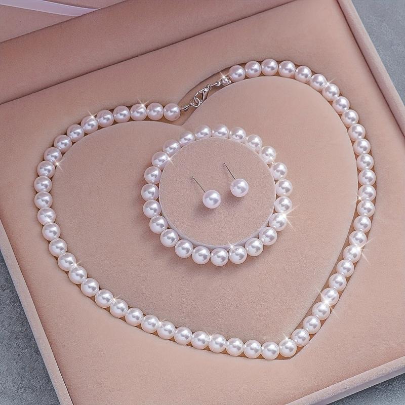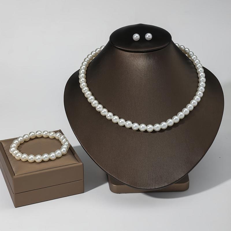 Elevate your style with this boho-inspired artificial pearl jewelry set. The set includes a versatile necklace, bracelet, and earrings that are perfect for daily wear or special occasions. The combination of alloy and resin materials adds a touch of elegance to your look.