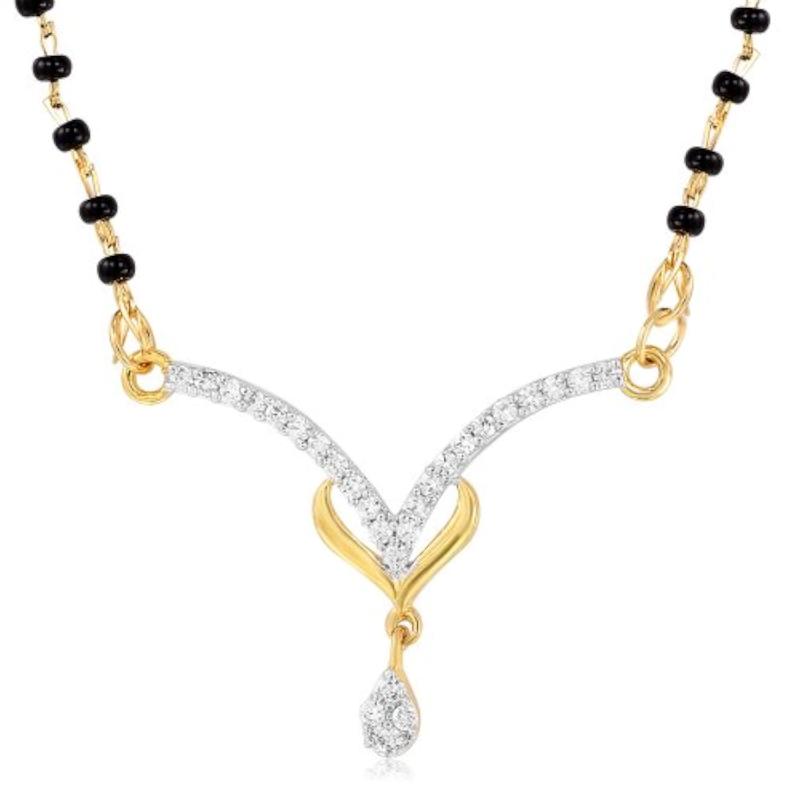 Elegant plated reverence mangalsutra set crafted from brass alloy with CZ stones.