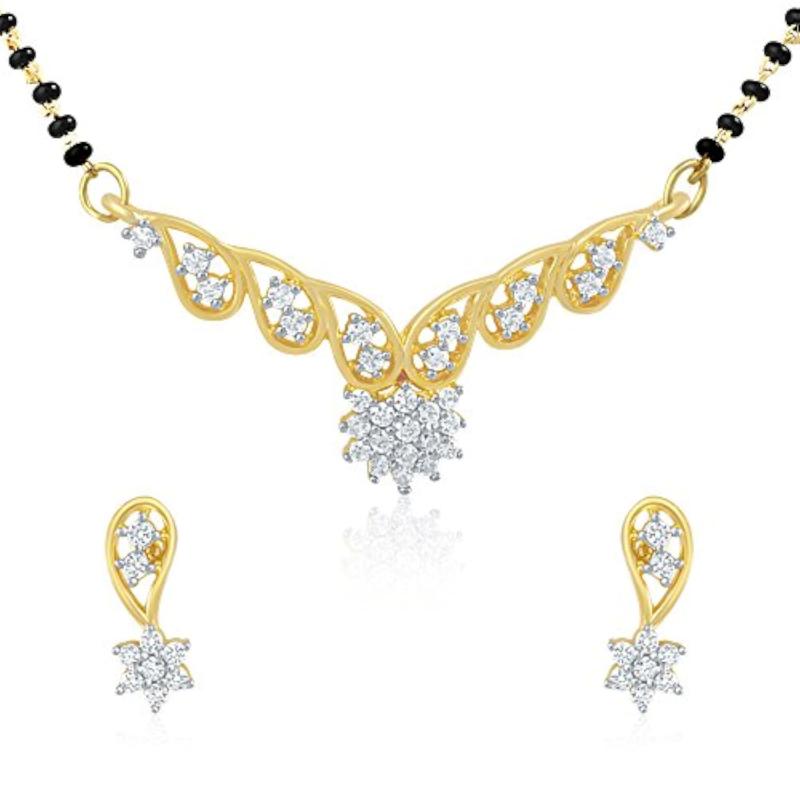 Elegant and classy mangalsutra set crafted from brass alloy with sparkling CZ stones.