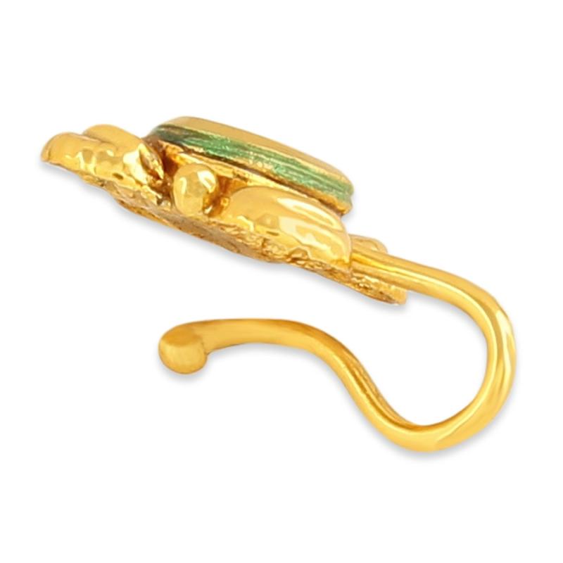 Beautifully designed brass nose pin with a floral motif, adding elegance to your look.