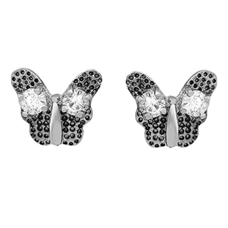 Adorn yourself with this exquisite rhodium plated solitaire butterfly pendant set featuring shimmering Swarovski Zirconia.