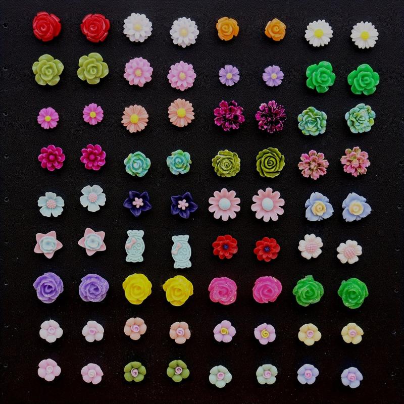 Add a pop of color to your outfit with these cute flower stud earrings set. Made of high-quality resin, these delicate earrings are perfect for everyday wear or special occasions.