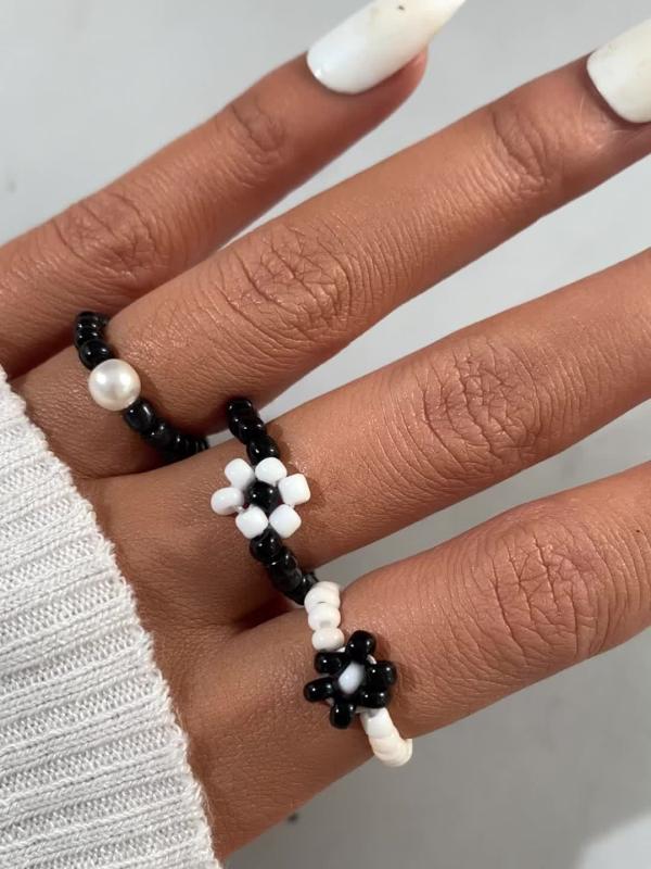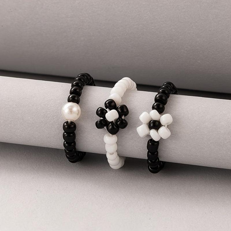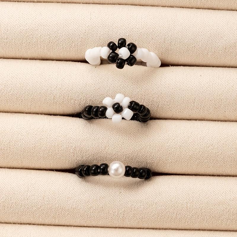 Elevate your style with this set of 3 stackable rings, featuring a classic and beaded design. Perfect for stacking or wearing individually.