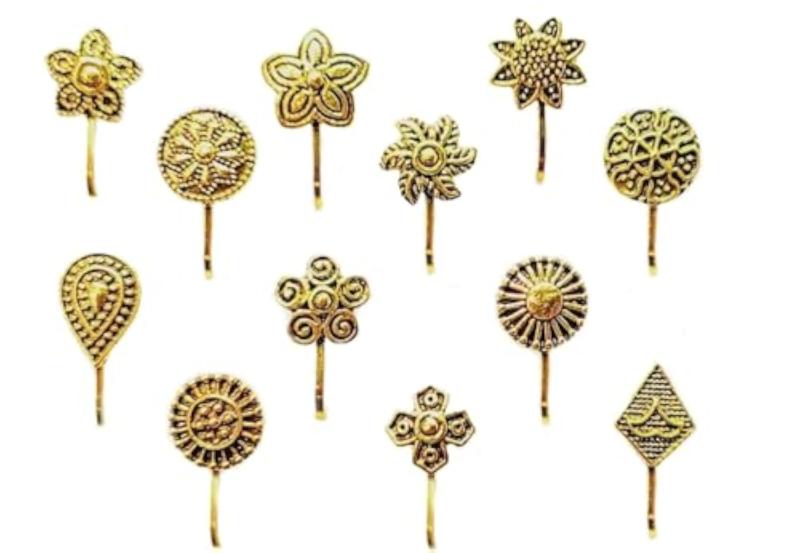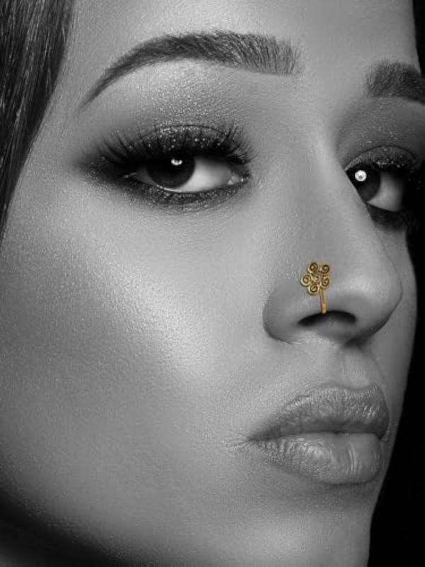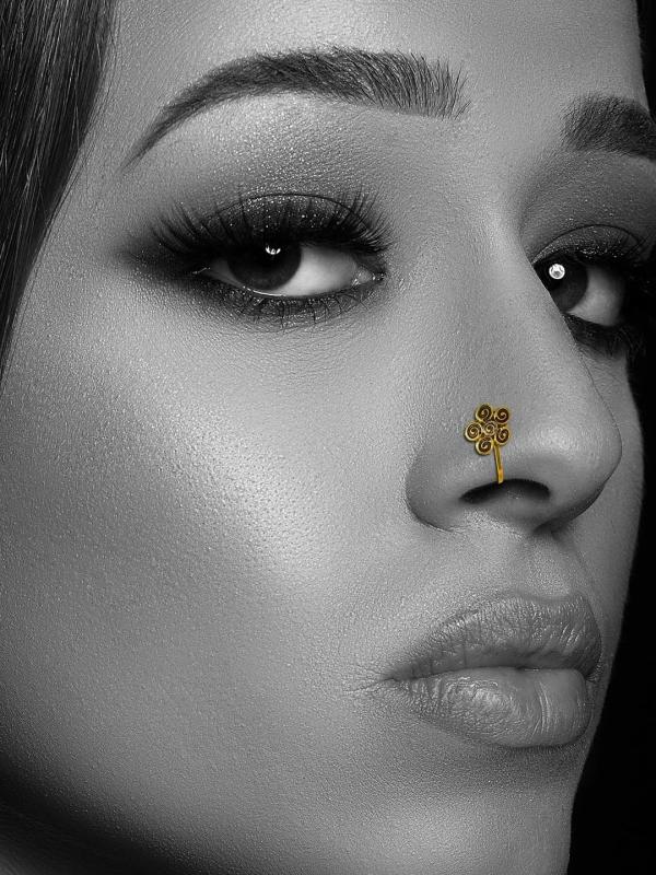 This stylish oxidised nose pin is perfect for those who want a trendy look without piercing. Simply press on for a unique style statement.