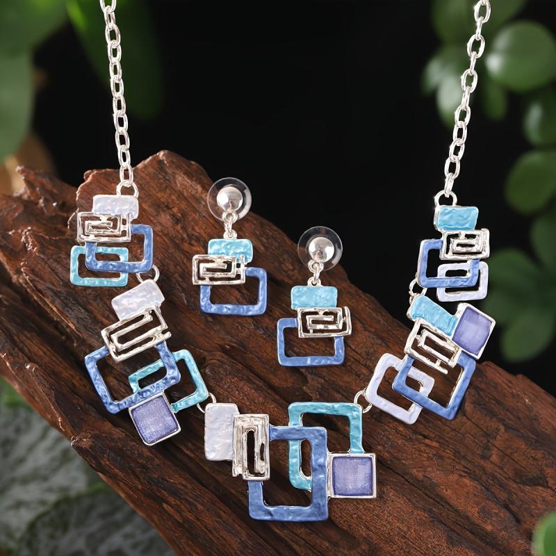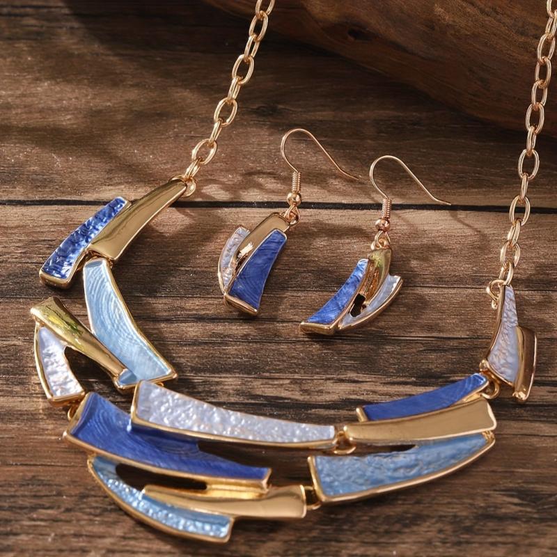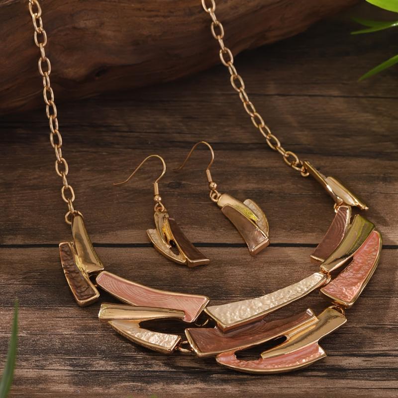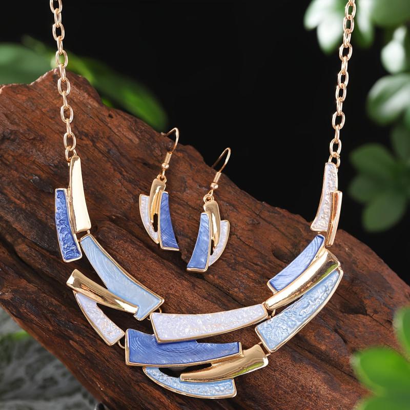 Complete your party look with this zinc alloy jewelry set featuring colorful enamel in irregular geometrical shapes. Perfect for banquets and special occasions.