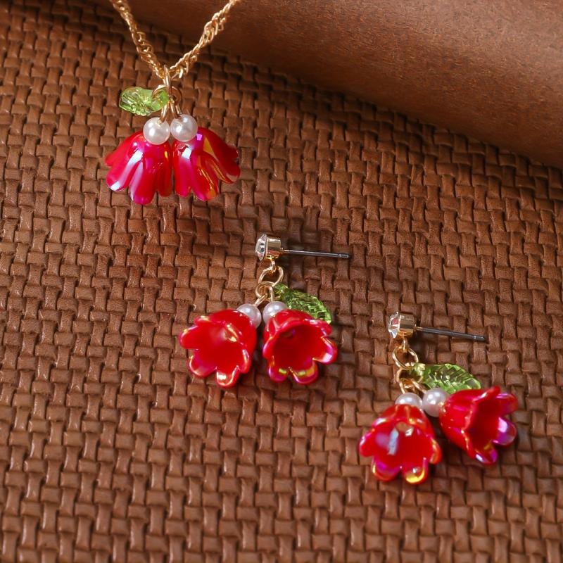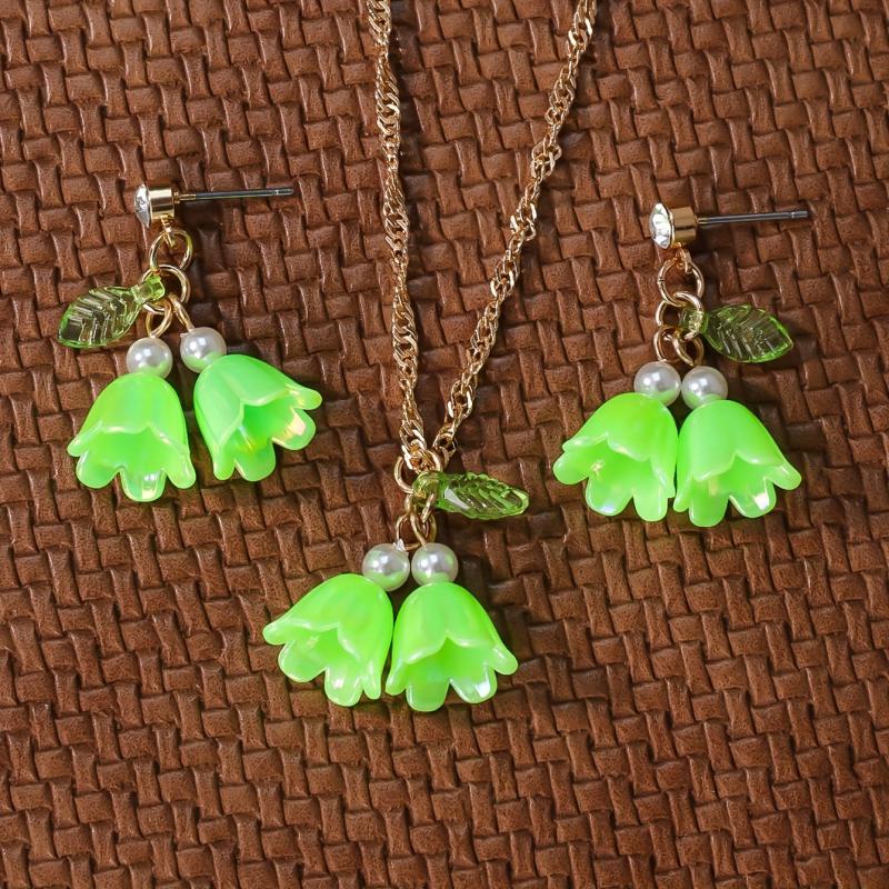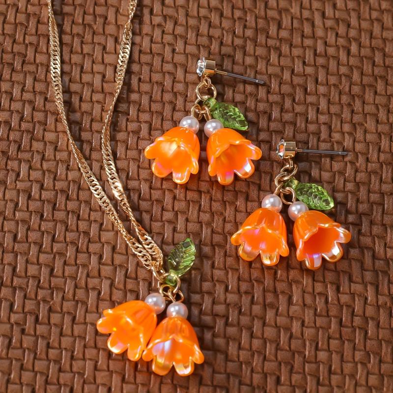Enhance your style with this vintage boho acrylic jewelry set featuring a glass mosaic pendant necklace and matching earrings. Perfect for daily wear or special celebrations.
