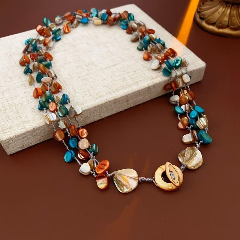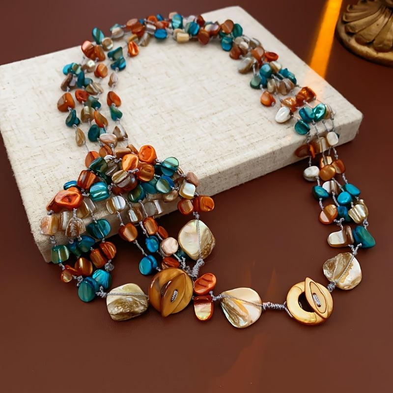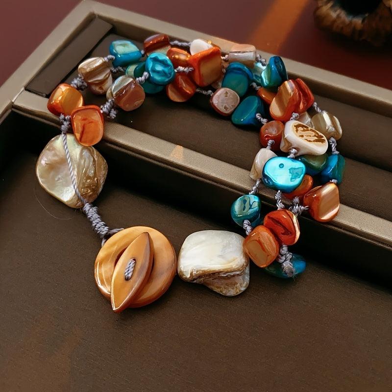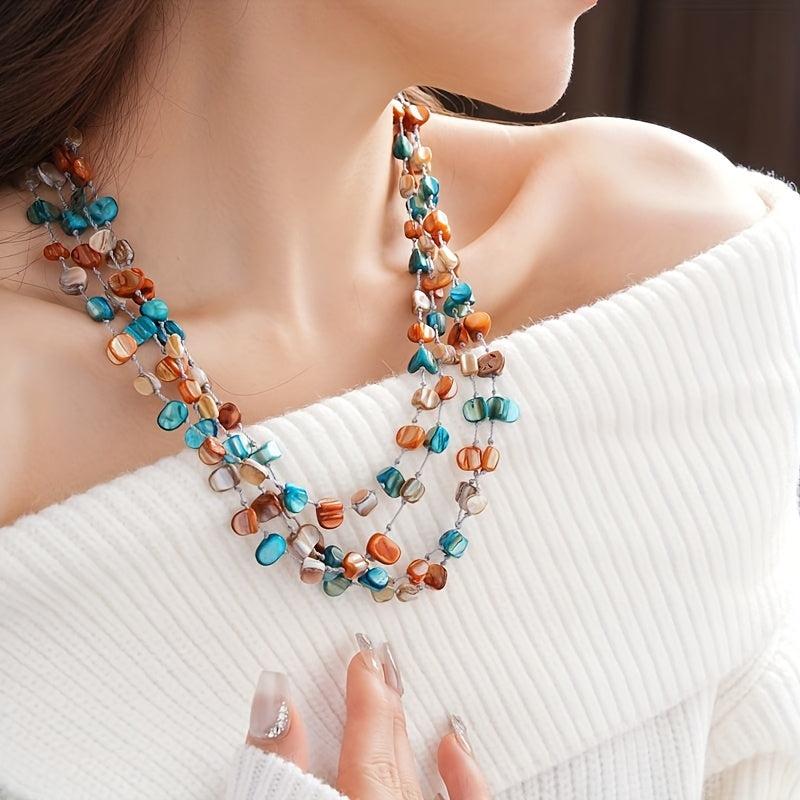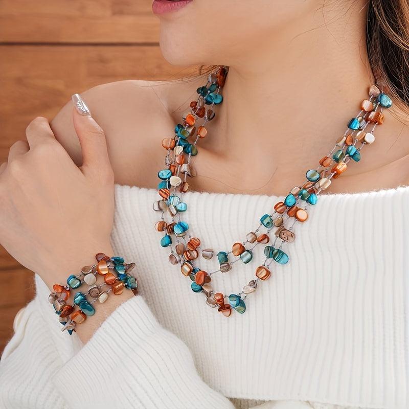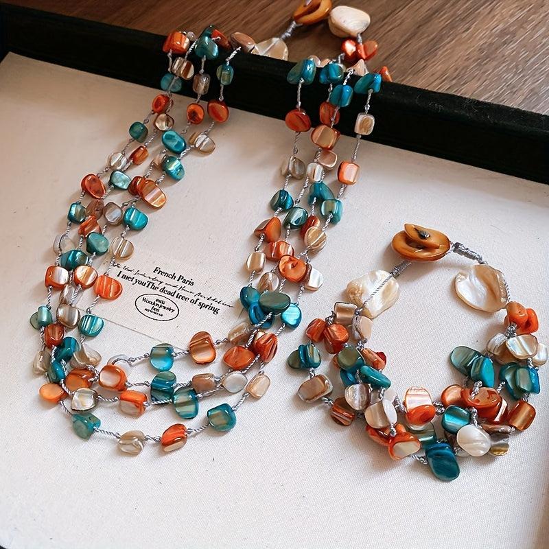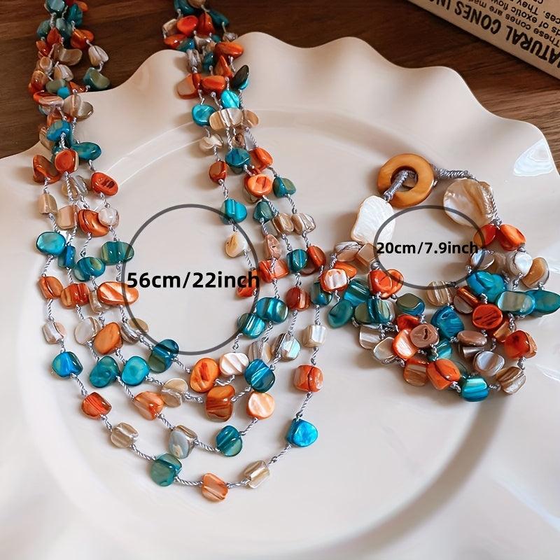 Add a pop of color to your outfit with this layered shell necklace and bracelet set. Perfect for parties, vacations, or simply adding a fun touch to your everyday look.