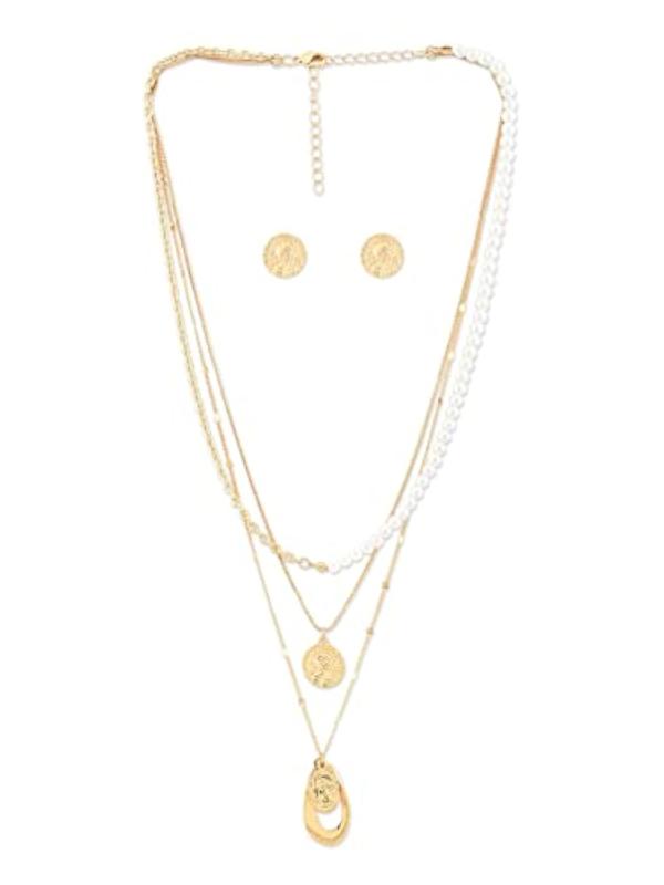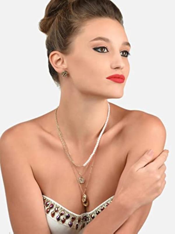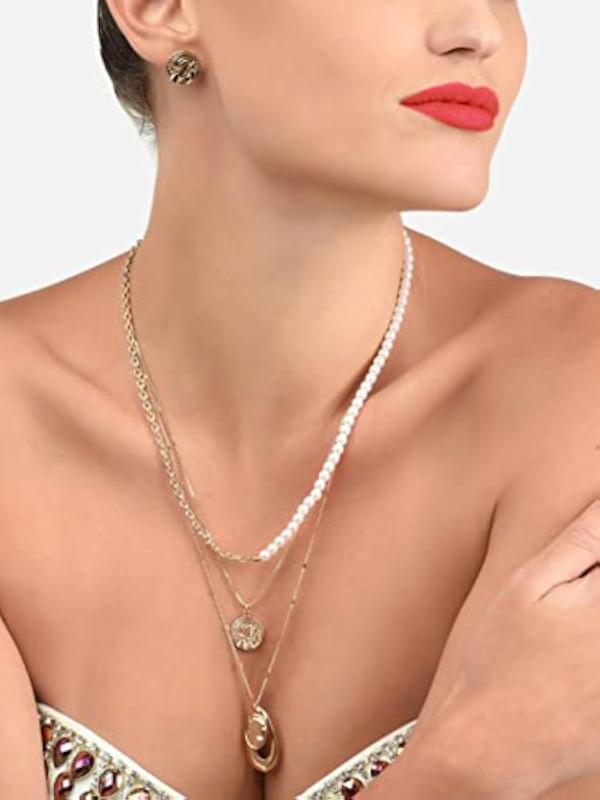 Elegant pearl embellished jewelry set for women.