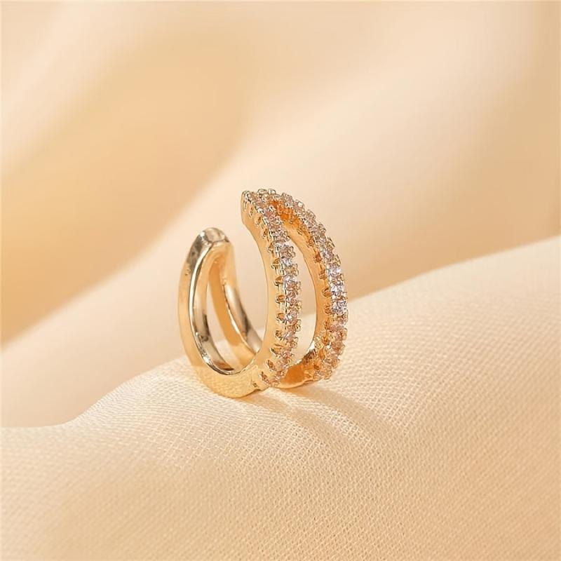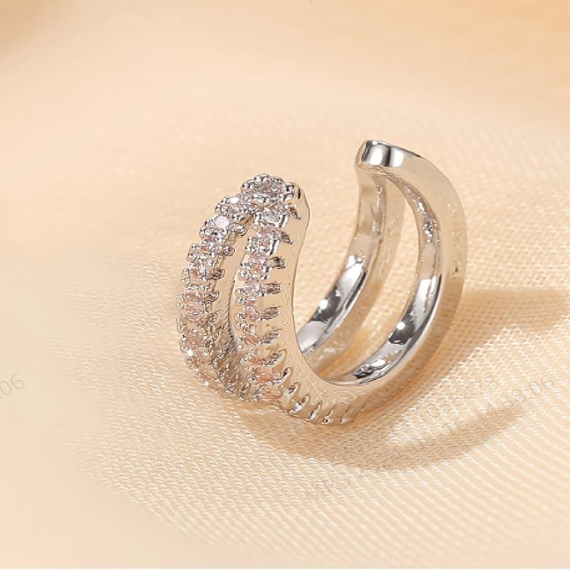 Elegant and durable ear clip made with double layered copper micro inlaid zirconia, perfect for daily wear.