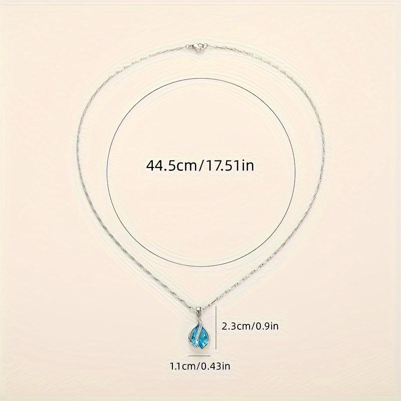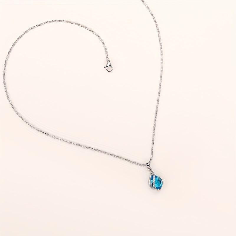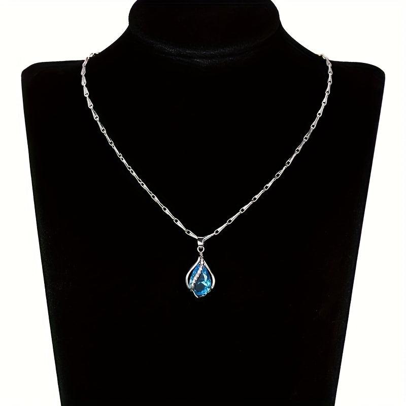 Elegant sapphire necklace with copper teardrop pendant, ideal for March birthstone celebrations or as a gift. Perfect for banquets and all-season wear.