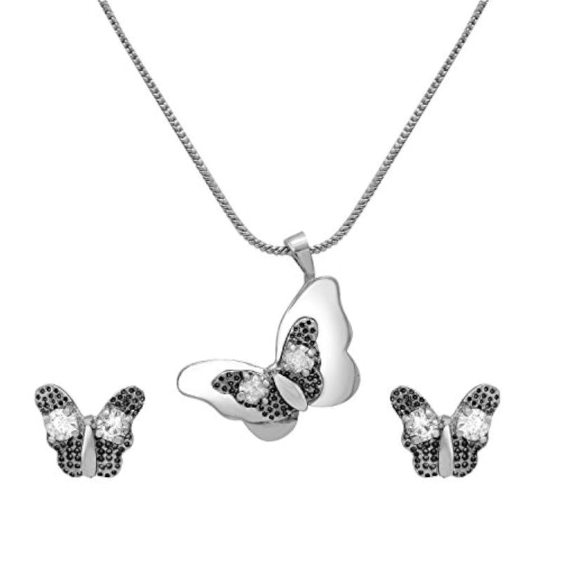 Elegant butterfly-shaped pendant set with solitaire crystals for a touch of sparkle.