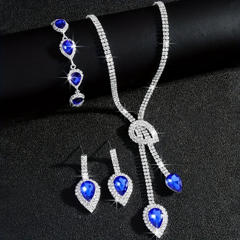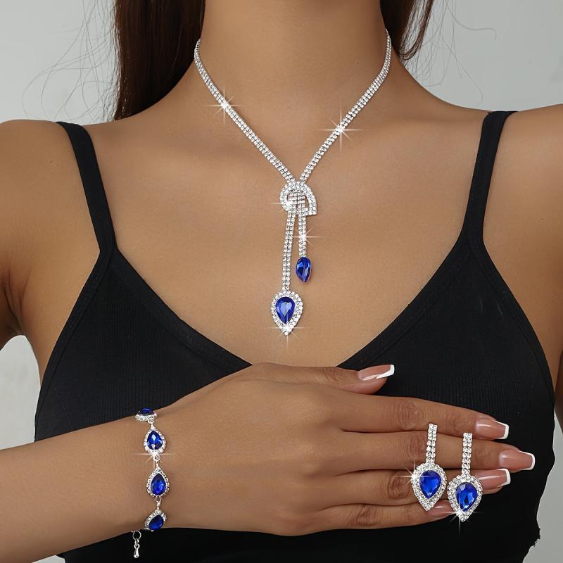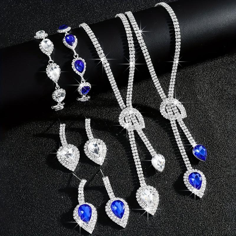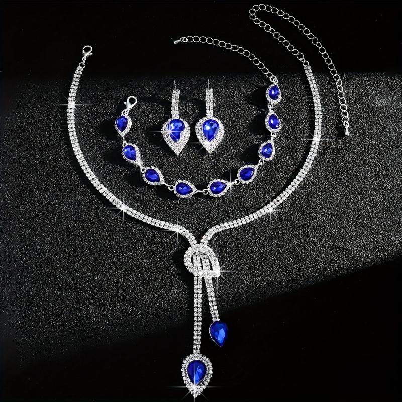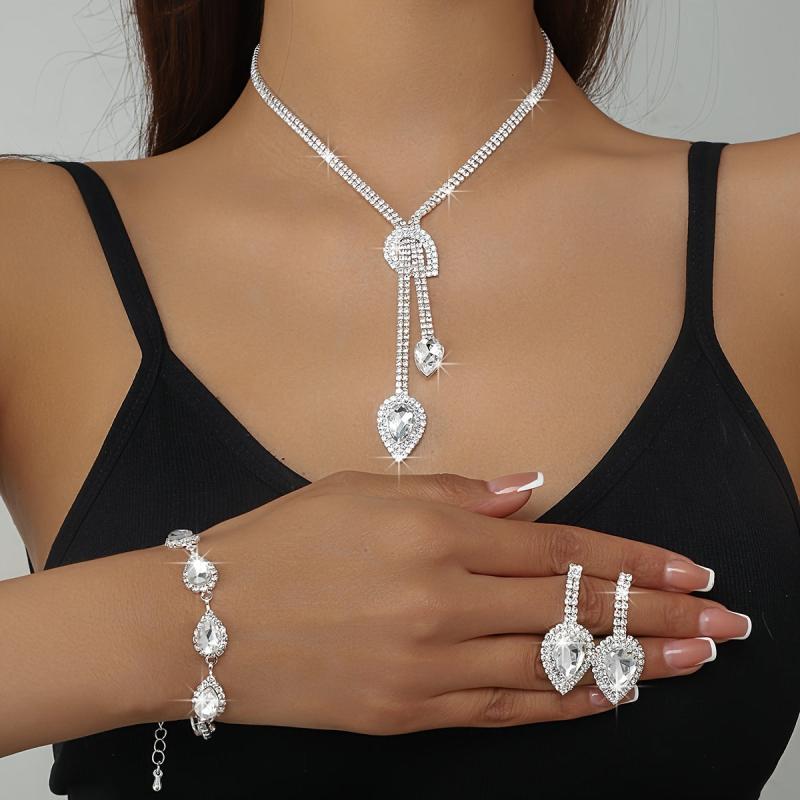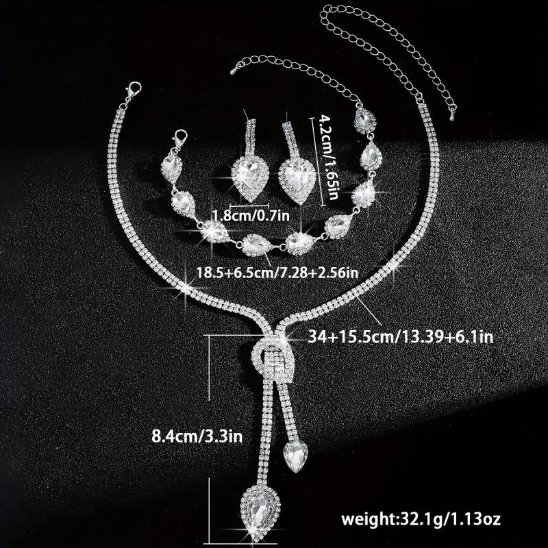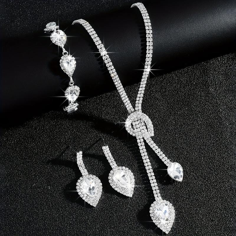 Elegant crystal drop necklace, bracelet, and earring set with sparkling K gold plating. Perfect for weddings and formal events.