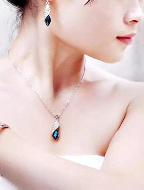 Surprise your loved one with this stunning crystal jewellery set on Valentine's day. The set includes a necklace, earrings, and a bracelet that will add a touch of elegance to any outfit.