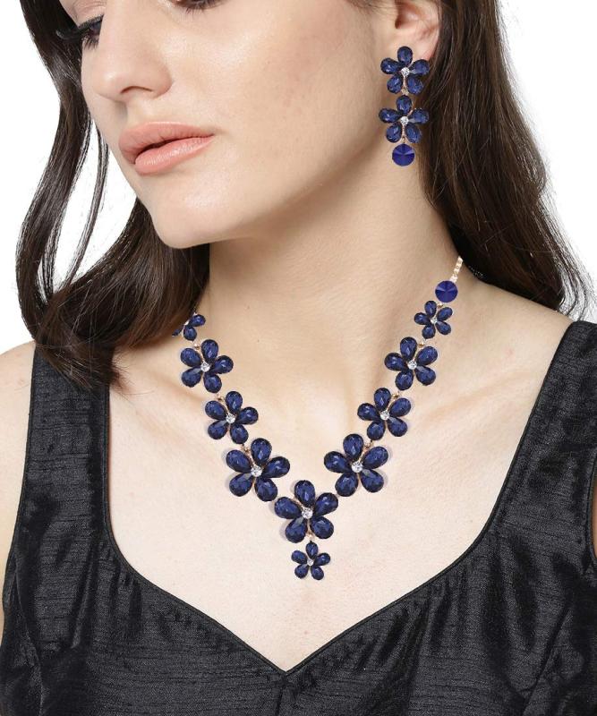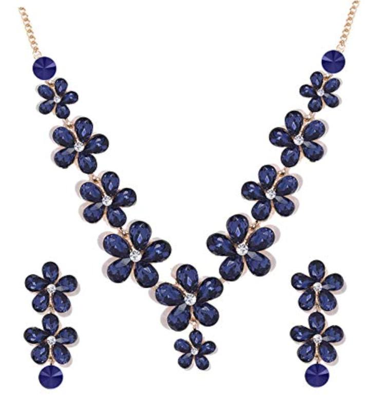 Complete your look with this elegant crystal necklace set including matching earrings.