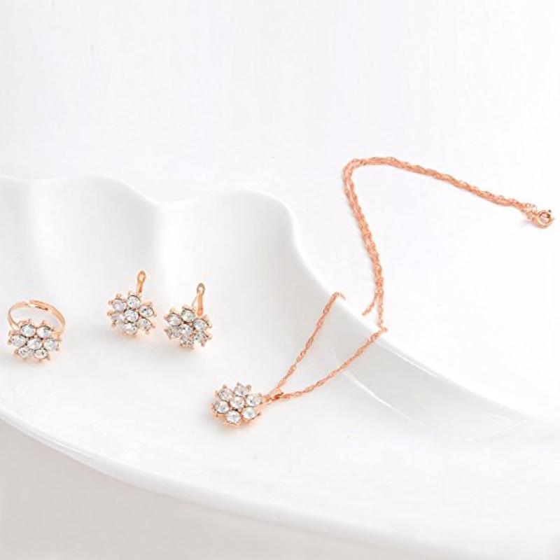 Complete your look with this stunning crystal plated necklace, earrings, and ring set. Perfect for any special occasion or as a gift for a loved one.