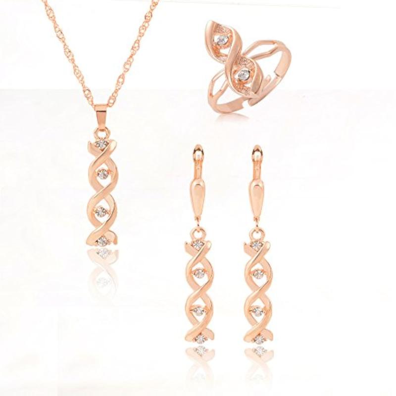 Enhance your style with this dazzling crystal rhinestone set. Includes earrings, ring, and necklace.