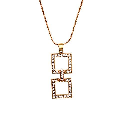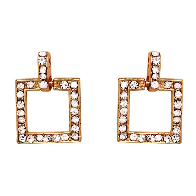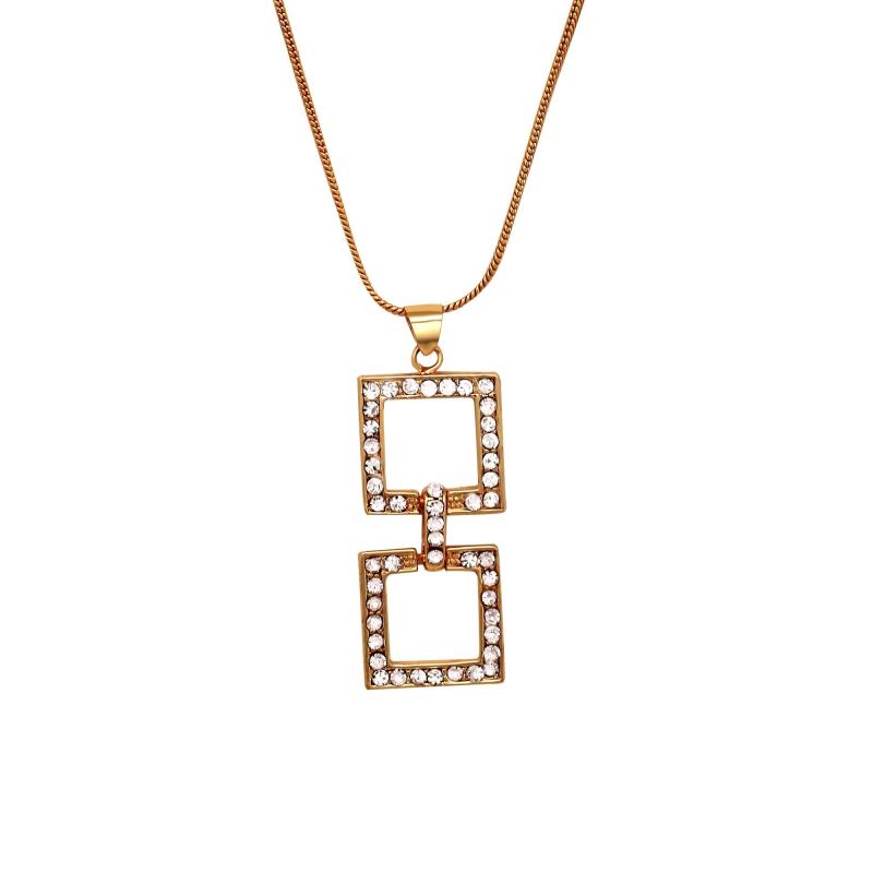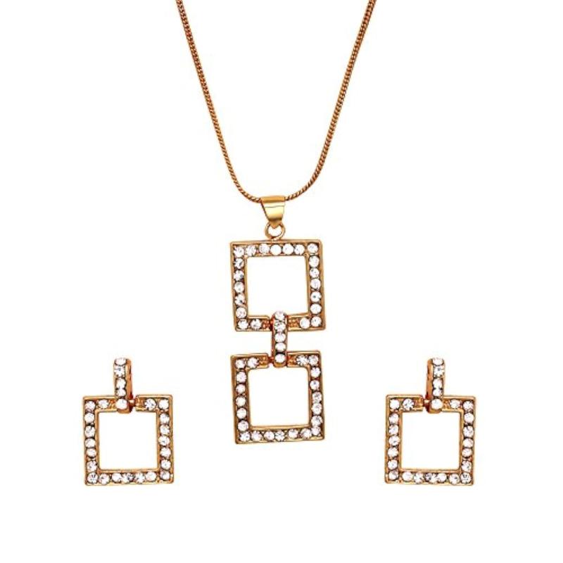 Elegant square plated pendant set with dazzling crystals, perfect for adding a touch of glamour to your outfit.