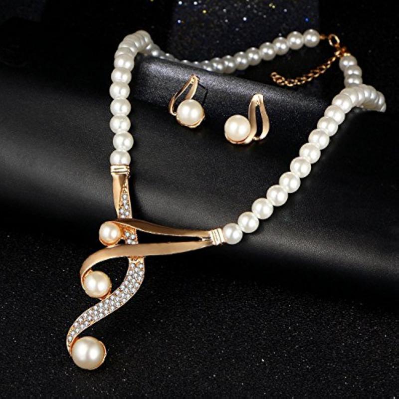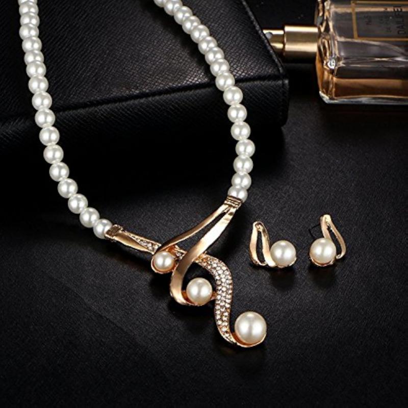 Elegant jewellery set featuring crystal and pearl necklace with matching earrings.