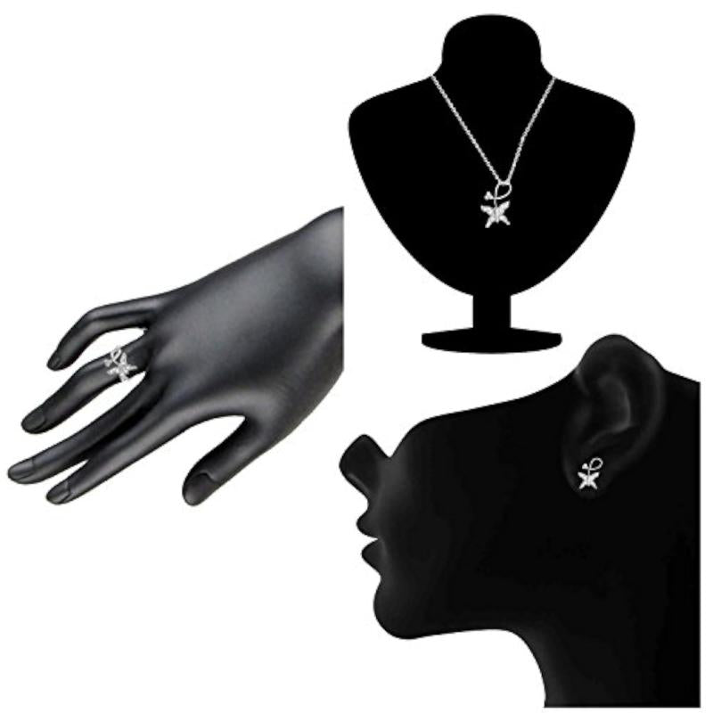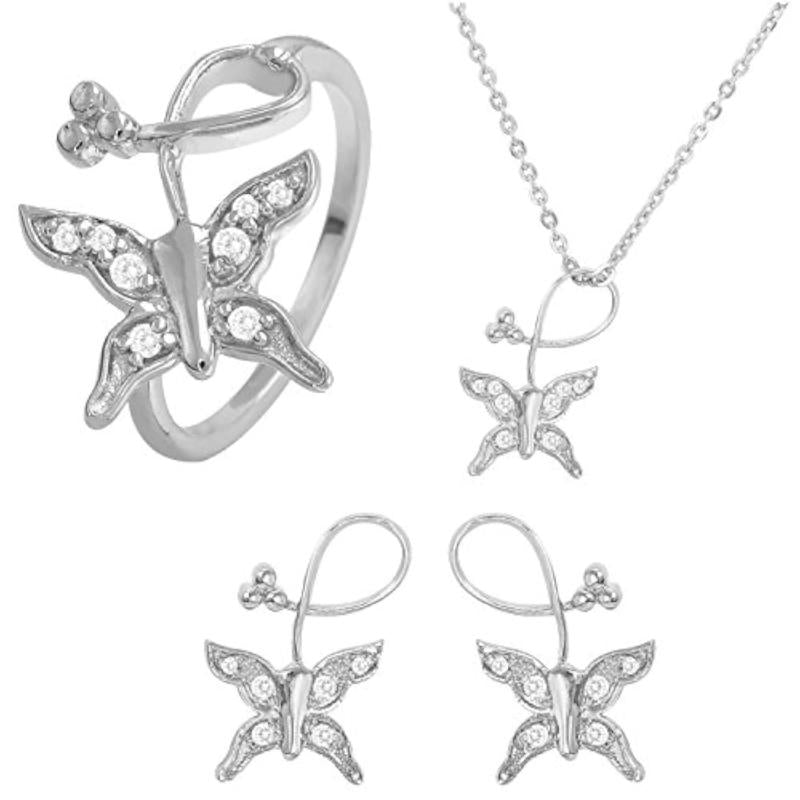Elegant combo featuring a CZ butterfly pendant set and rhodium-plated ring. Perfect for adding a touch of sparkle to your outfit.