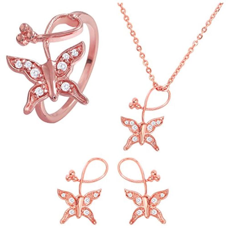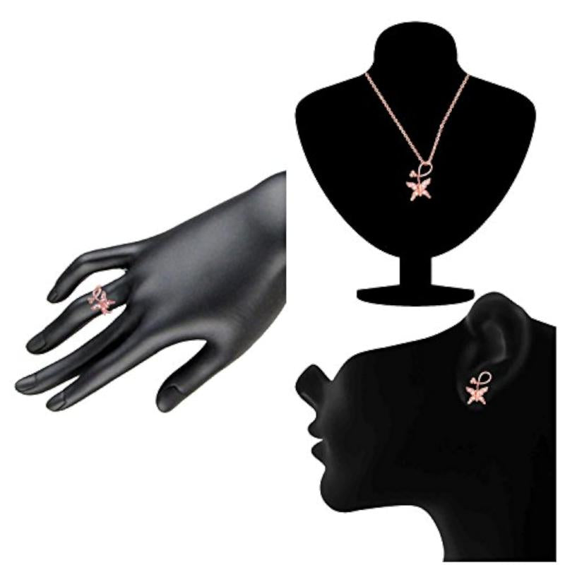 Adorn yourself with this stunning CZ Butterfly Rose Plated Pendant Set & Ring Combo. Perfect for any occasion!