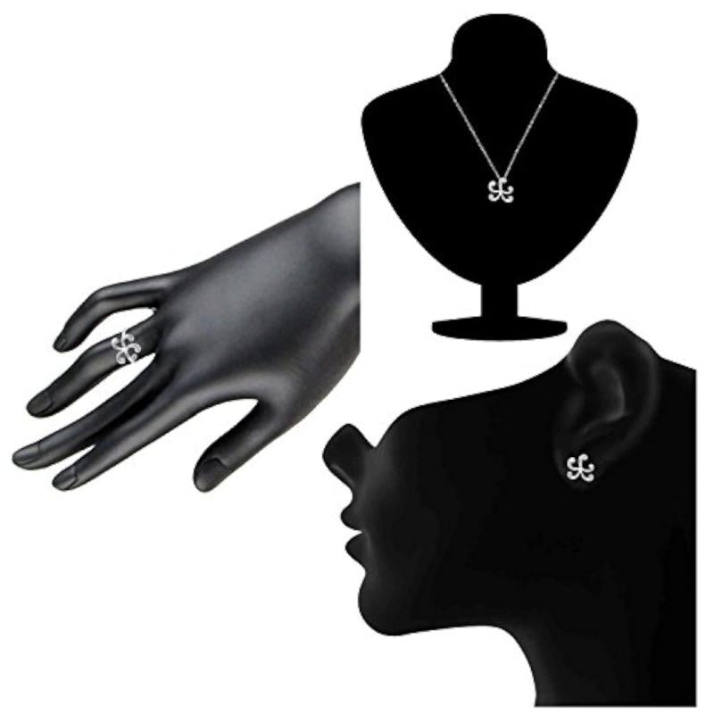 Elegant CZ Curvy Star Rhodium Plated Pendant Set with matching ring for a stunning look.