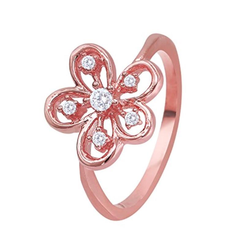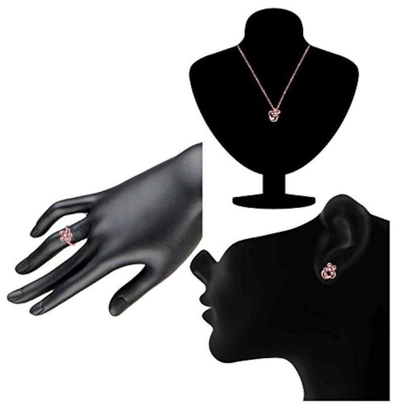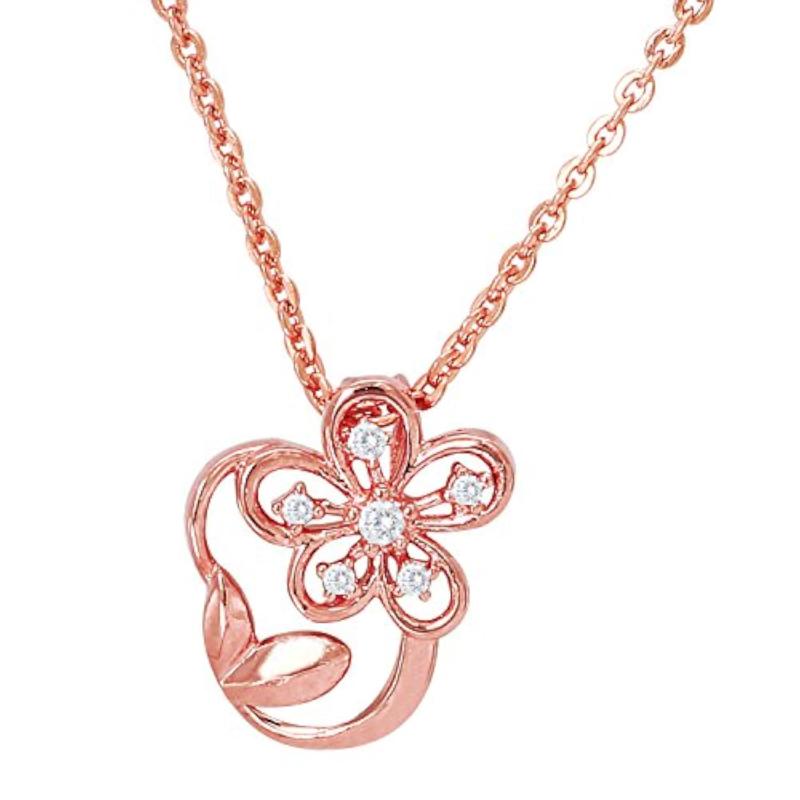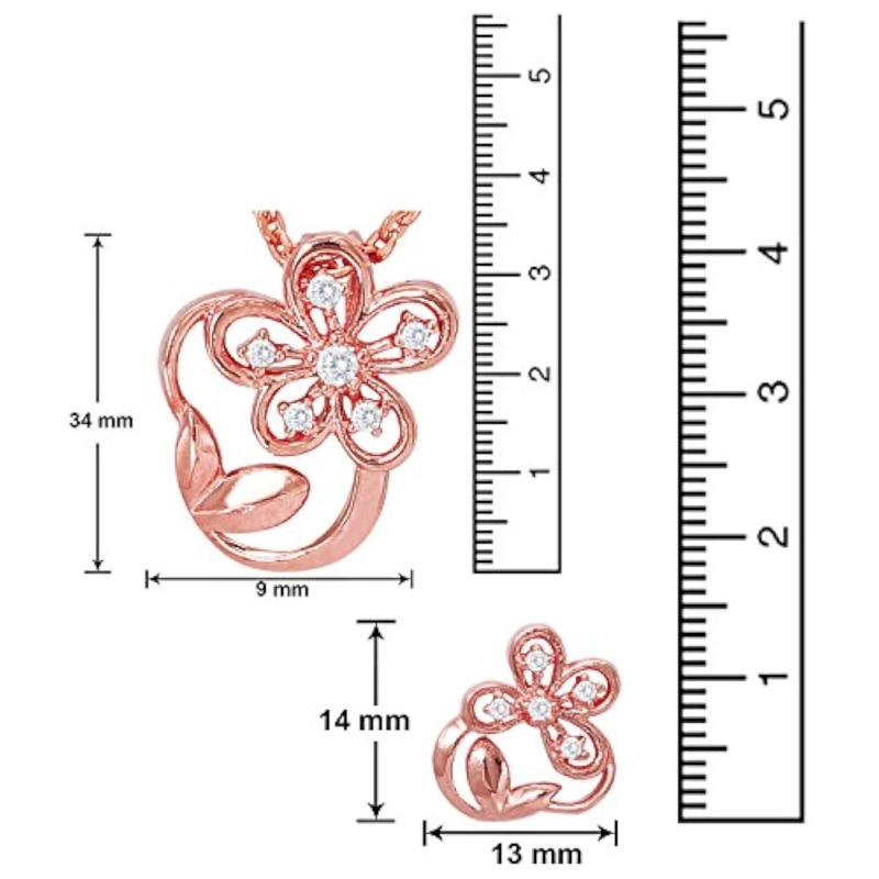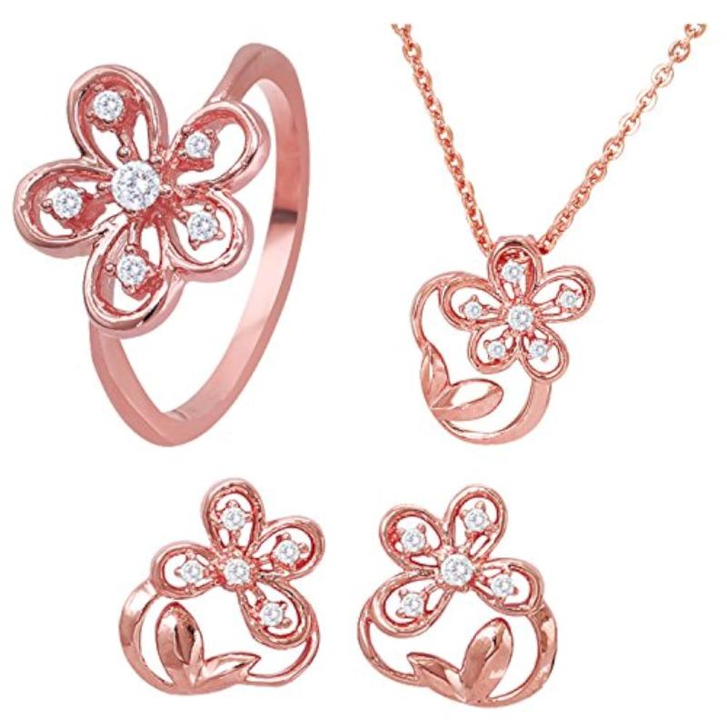 Add a touch of elegance with this stunning CZ floral leaf pendant set and ring in rose plated finish.