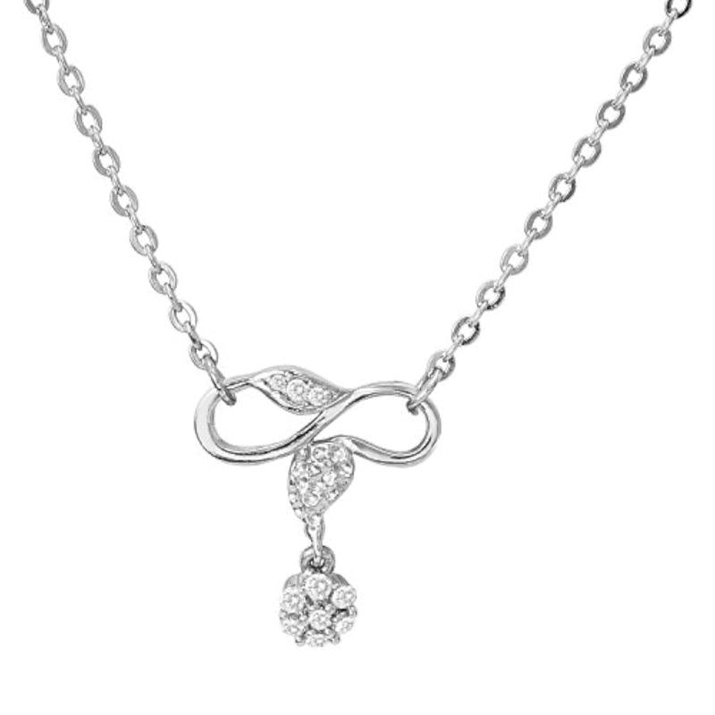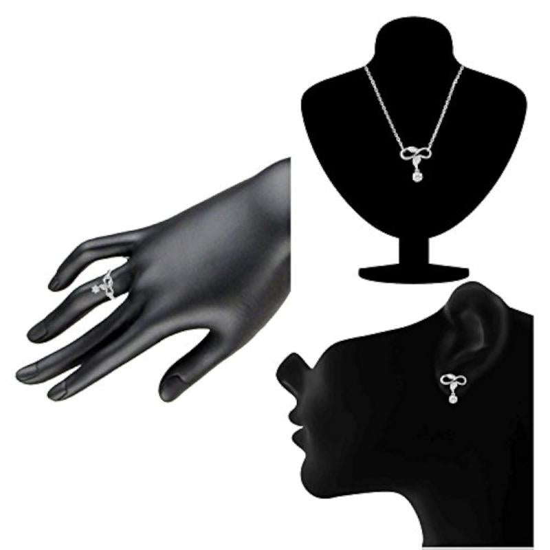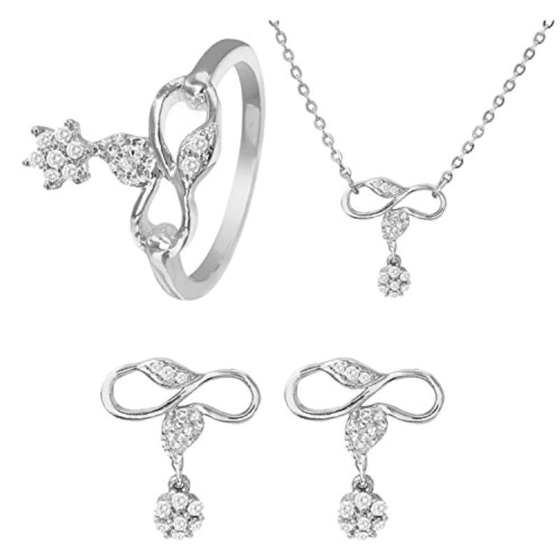 Elegant CZ floral leaf twist design pendant set and ring with rhodium plating.