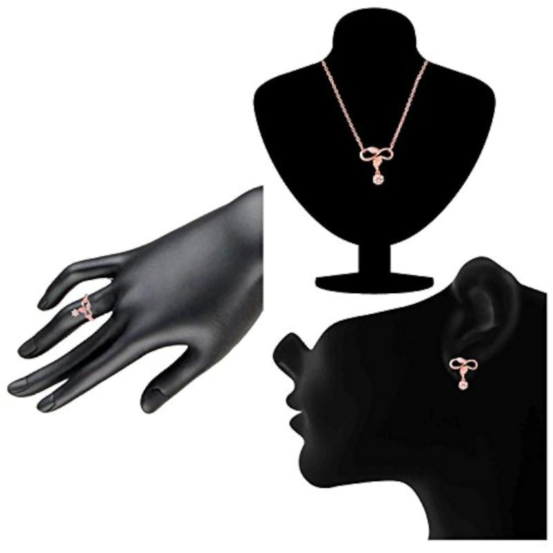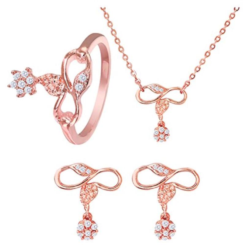 Elegant set featuring a twist rose plated pendant and ring with CZ floral leaf design.