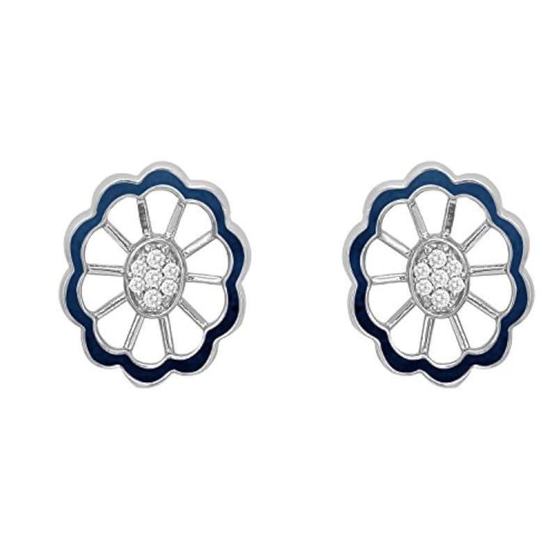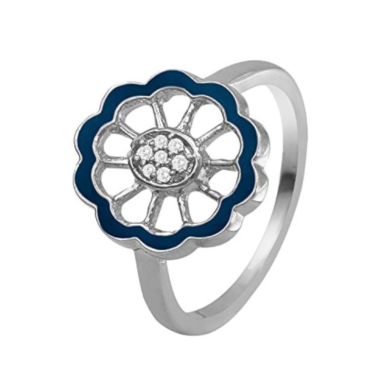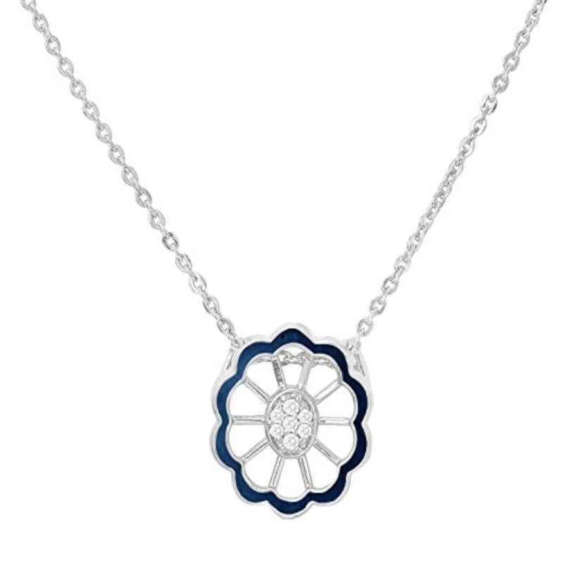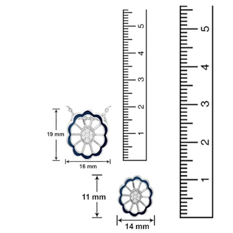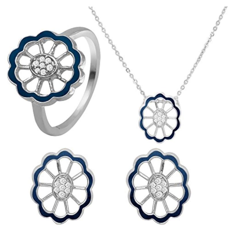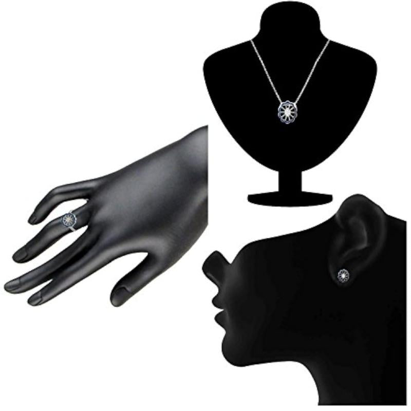 Elegantly designed CZ floral pendant set with matching ring in rhodium plating.