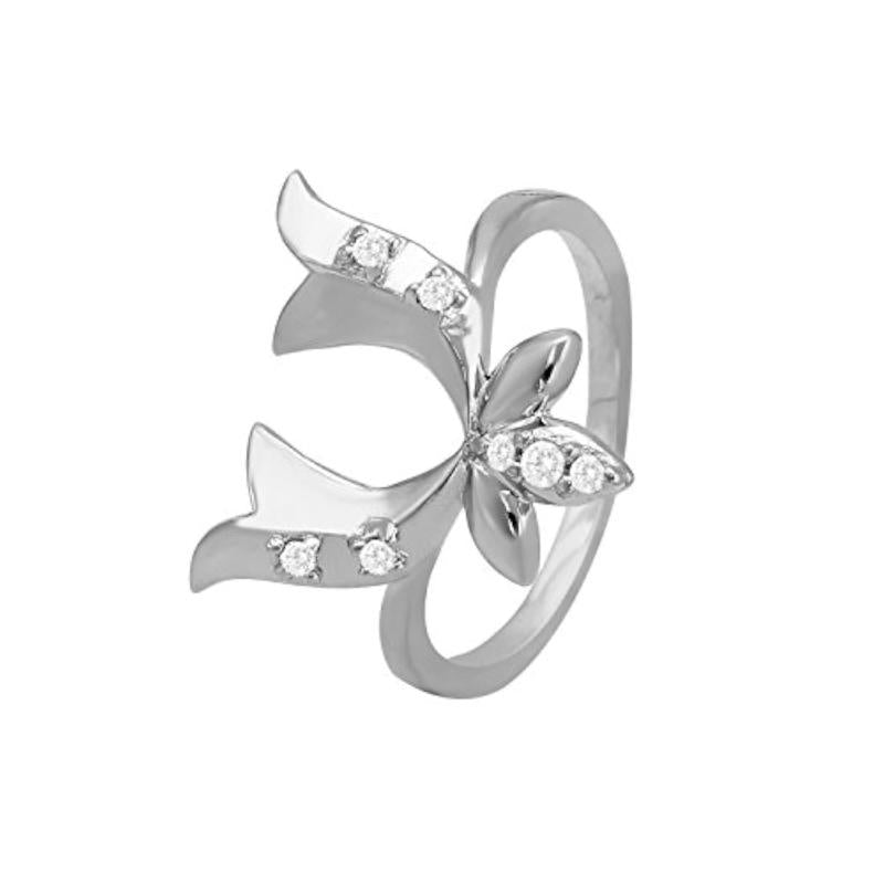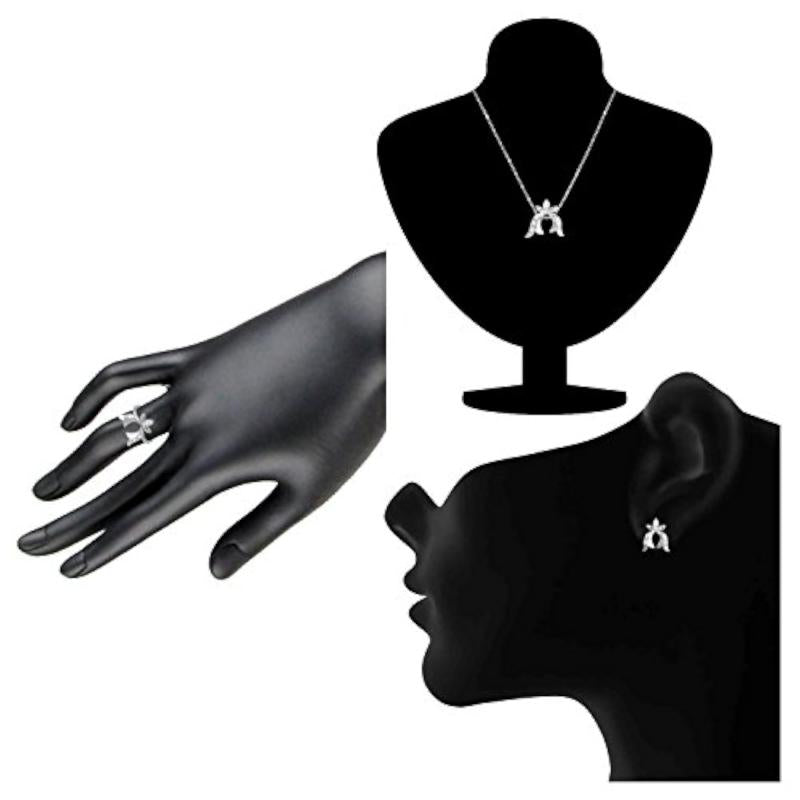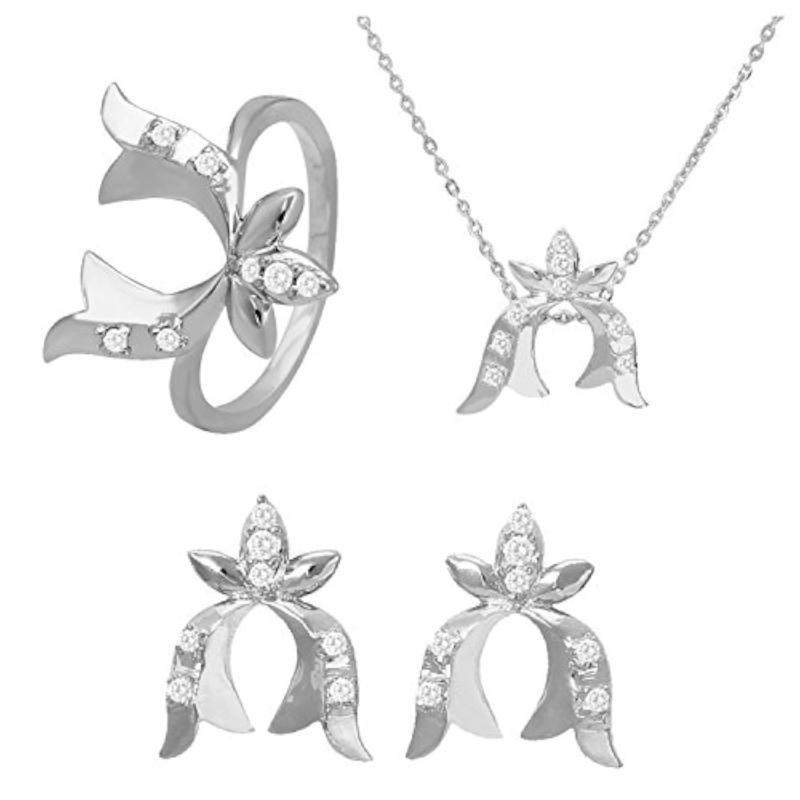 Elegant floral design pendant set and ring combo with CZ stones, plated in rhodium for a luxurious finish.