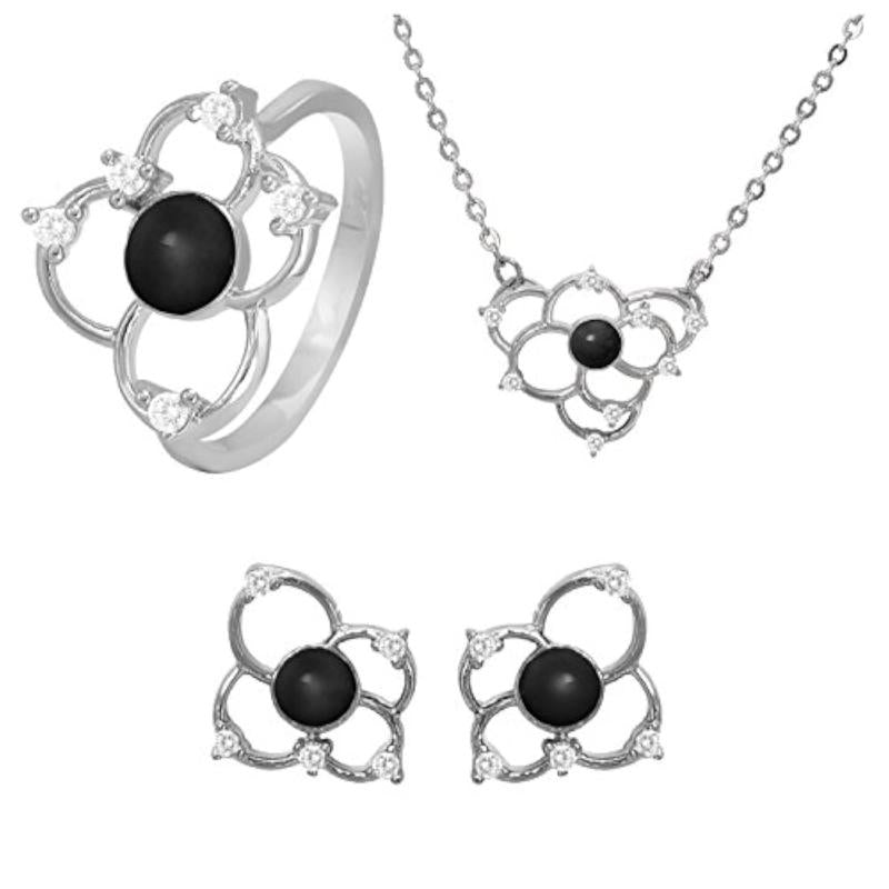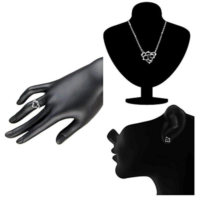 Elegant combo featuring a CZ flower pendant set and matching ring in rhodium plating.