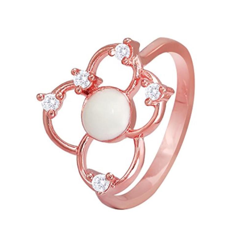Elegant combo of a CZ flower rose plated pendant set and ring for a sophisticated look.