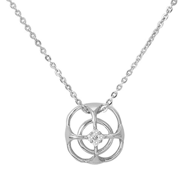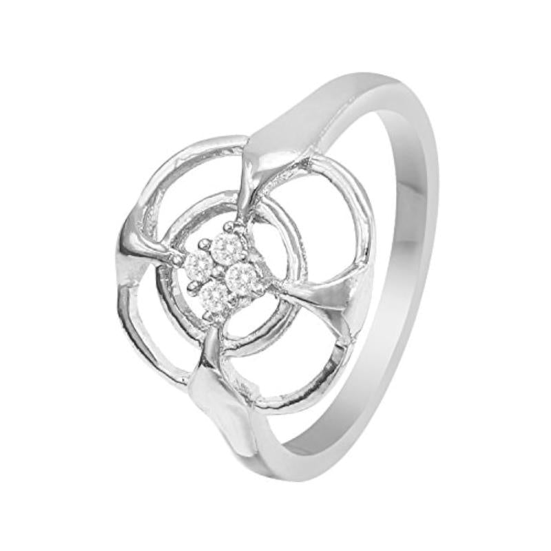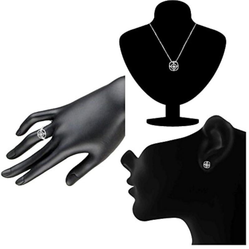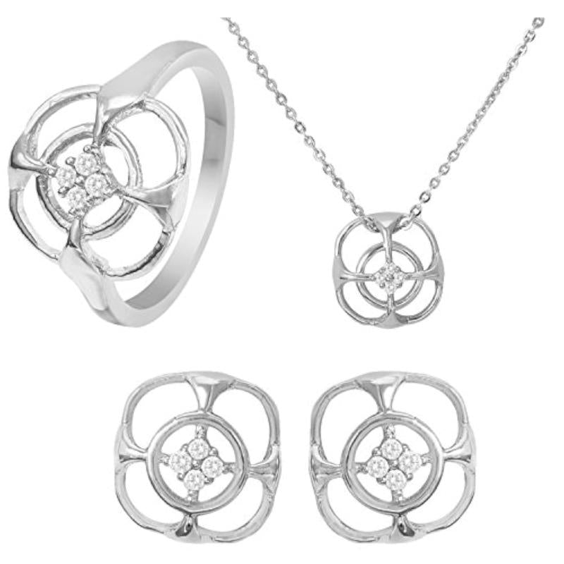 Adorn yourself with this stunning CZ flower four petal pendant set and ring combo. The rhodium plating adds a touch of elegance to your look.