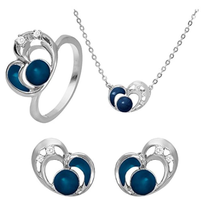 This dazzling CZ heart pendant comes with a matching ring for a complete jewelry set.
