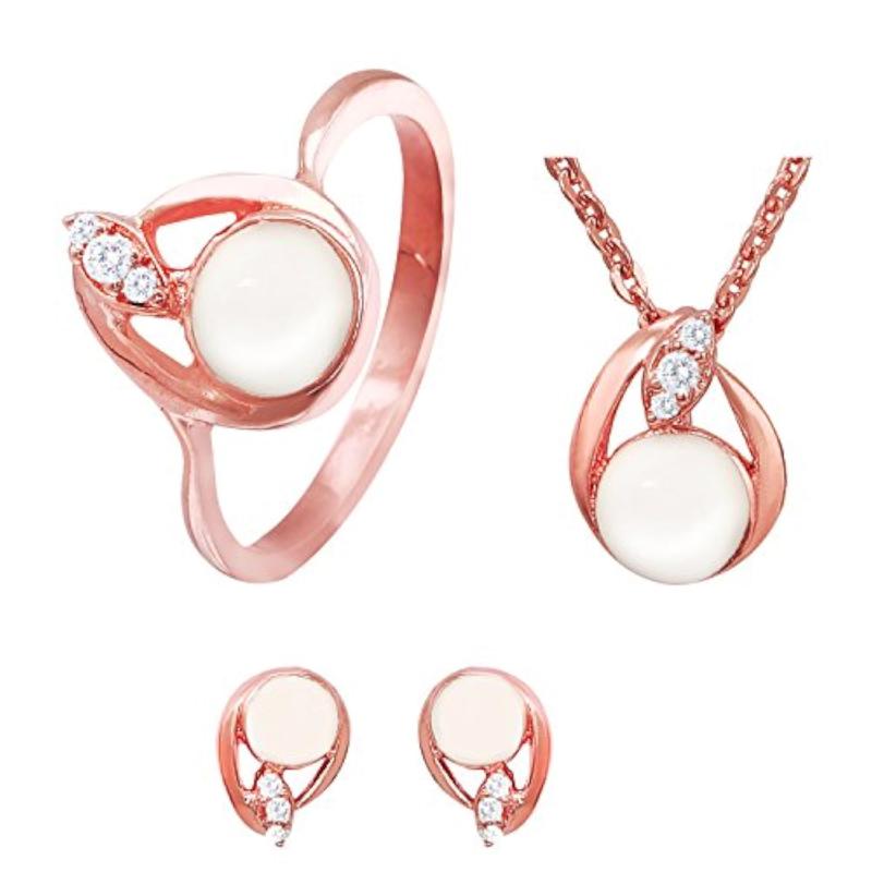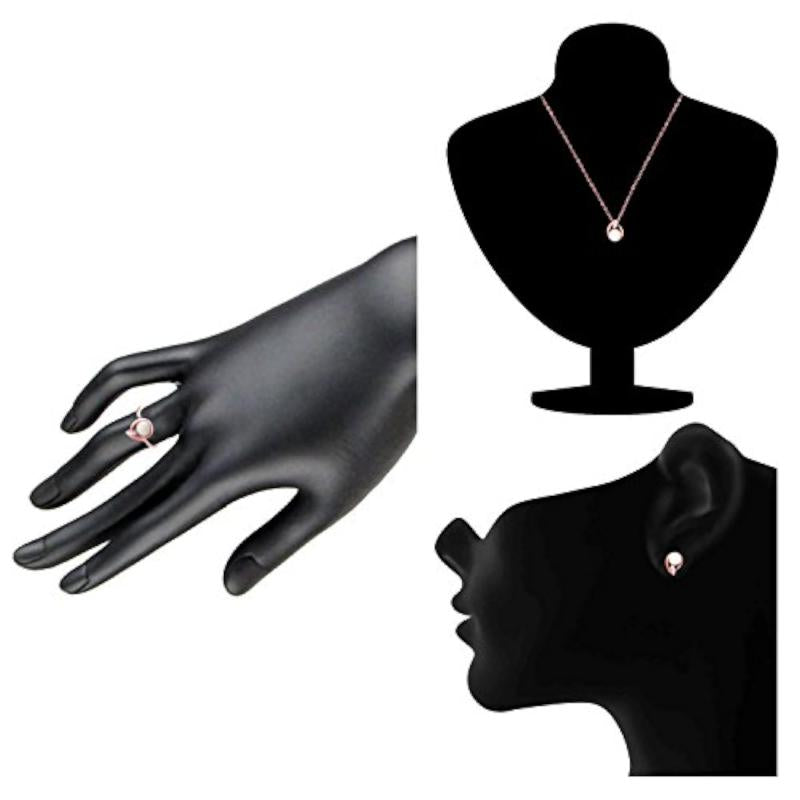 Elegant combo featuring a rain drop design pendant set and matching ring in rose plated finish. Perfect for adding a touch of glamour to any outfit.