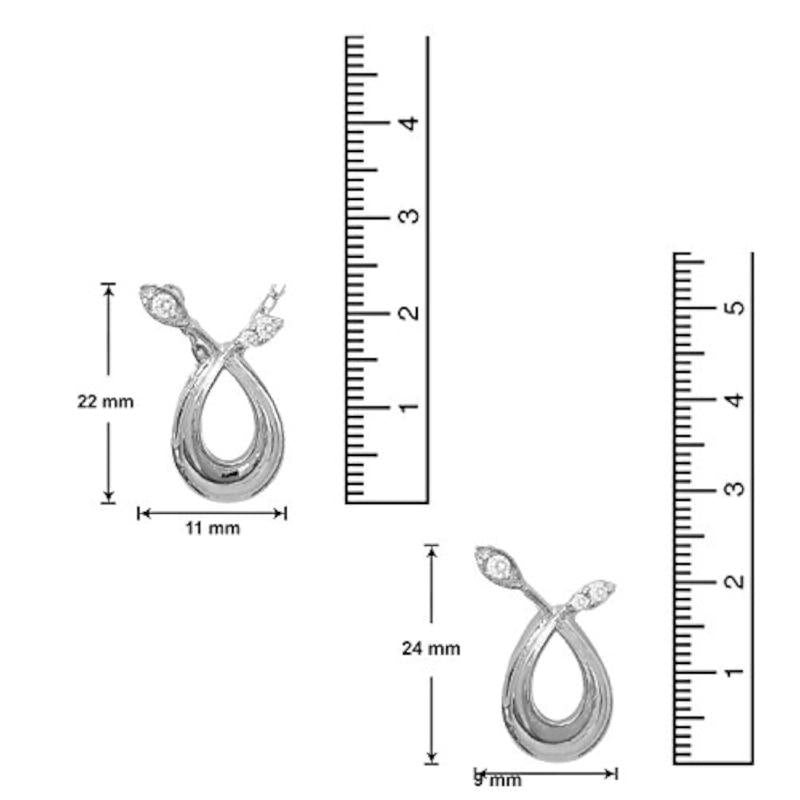 Elegant rhodium plated pendant set and ring featuring twin leaf design with sparkling CZ stones.
